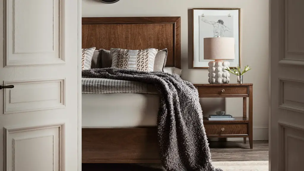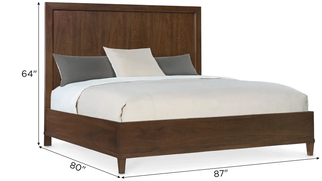 The Archives Panel Bed blends timeless style with modern luxury. Featuring a high clarity Classic Walnut finish over figured cathedral walnut veneers, this bed adds richness and depth to any bedroom. The set includes a headboard, footboard, and rails, with tapered legs adding a refined touch. The headboard can also be used on its own, making this bed a versatile and elegant centerpiece for your room.