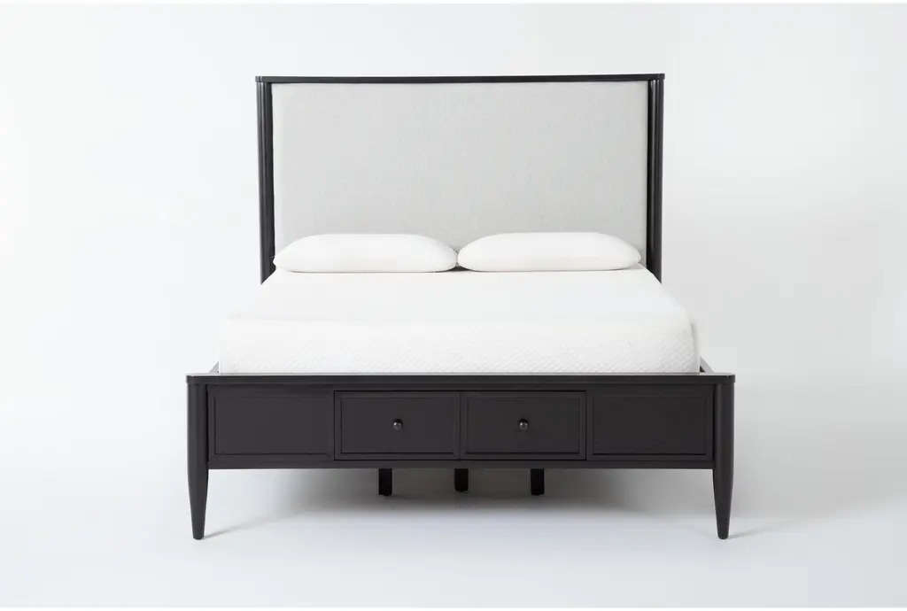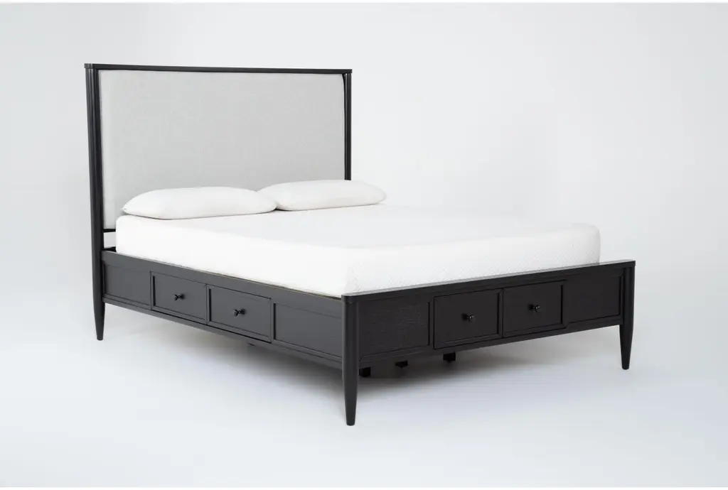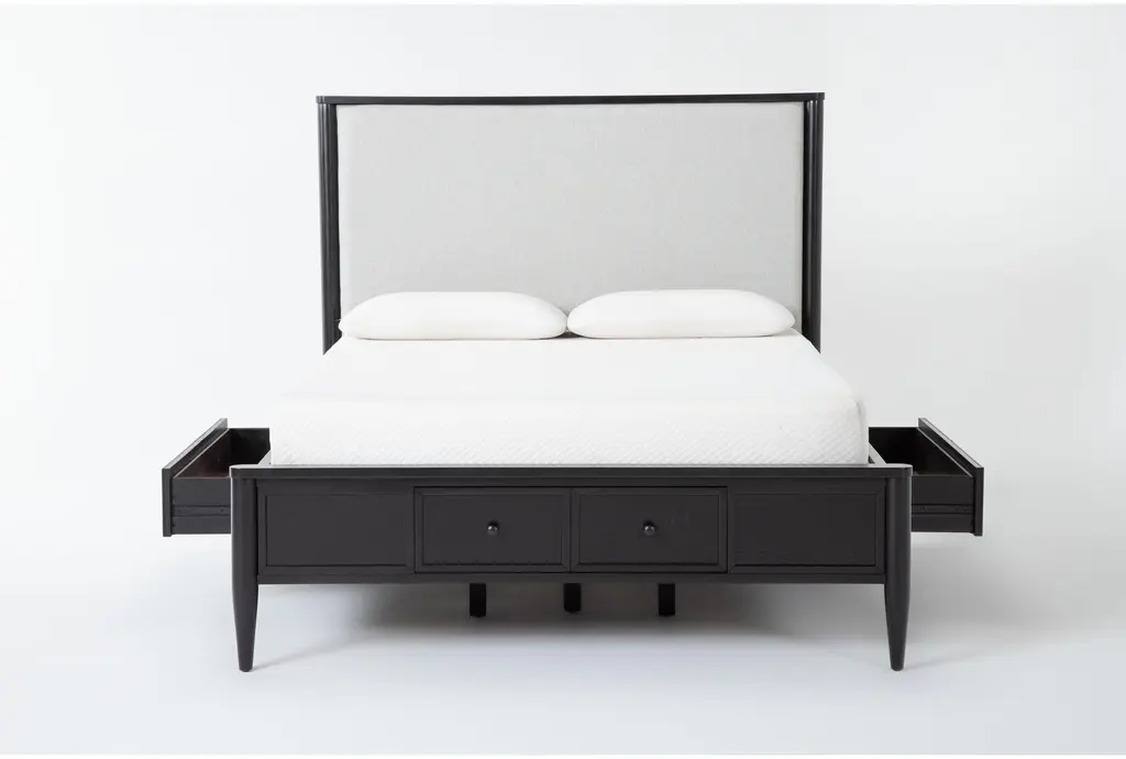 Austen Black King Wood & Upholstered Platform Bed With Side & Footboard Storage | Drawers