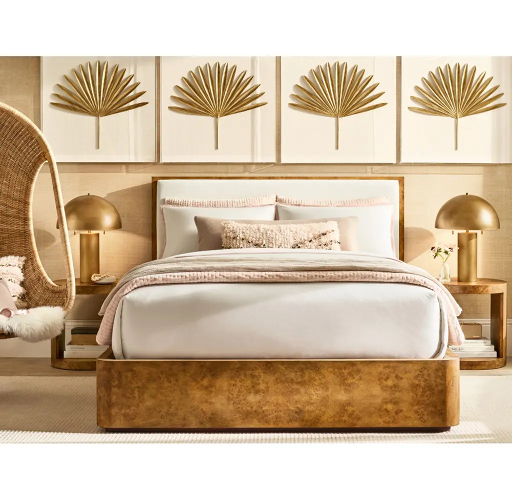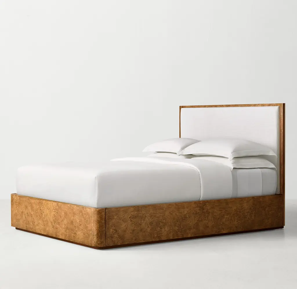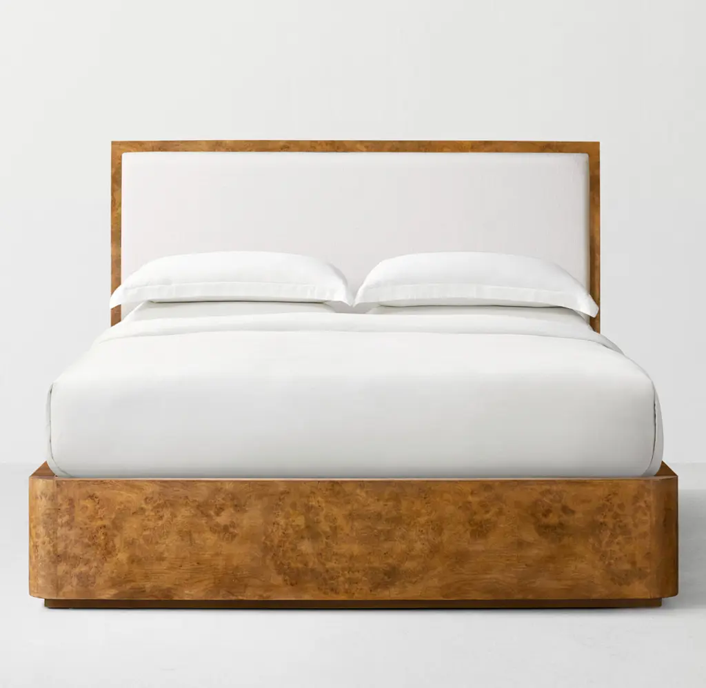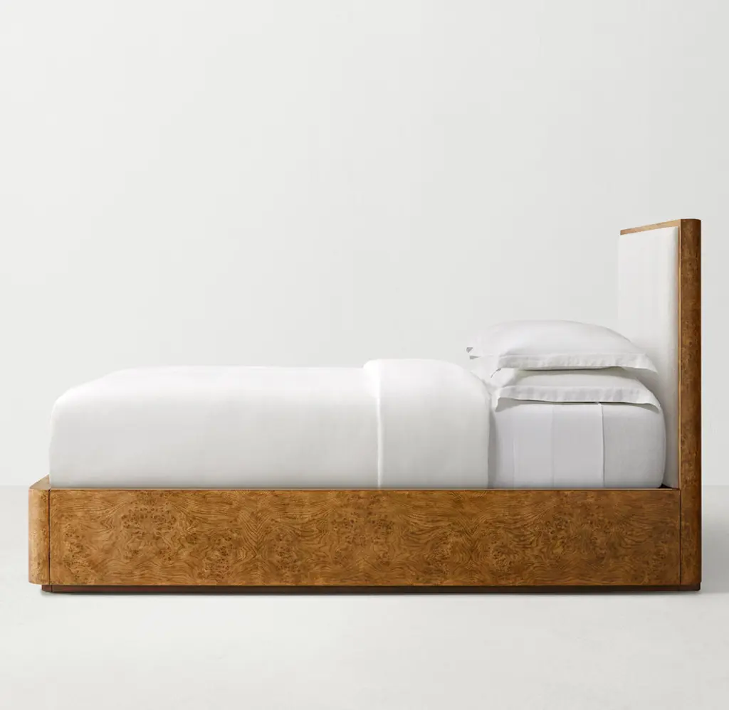 Understated and tailored in its restraint, our collection honors the minimalist geometric forms of 1970s postmodernism and the era's embrace of exotic materials. The clean, gently curved silhouettes are wrapped in burlwood veneers, which highlight the intricate, swirling grain patterns and mottled shading. Expertly cut and pieced by hand, the burl is sanded and buffed to a matte luster. SHOP THE ENTIRE COLLECTION
