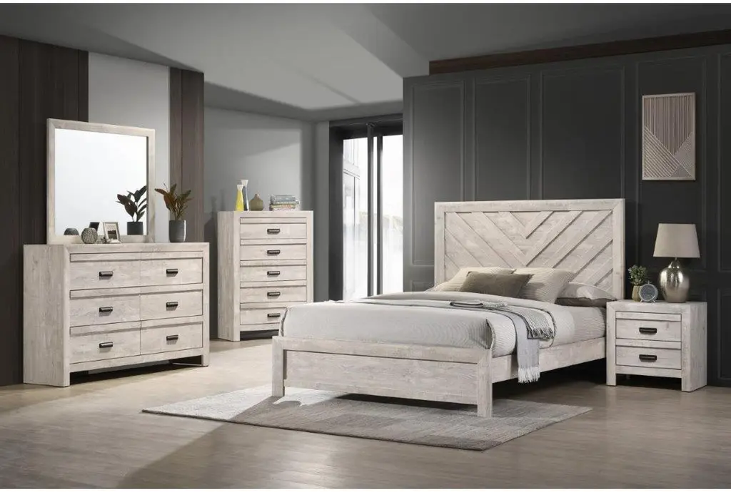 Introducing the Baylor Queen Panel Bed, a perfect blend of modern and rustic styles. This bed features a soft white finish that complements any bedroom decor, creating a serene and inviting sleeping space. Crafted from MDF with a paper veneer and rubberwood, it offers both durability and a chic, contemporary farmhouse look.