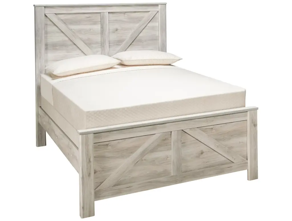 The Bellaby Queen Panel Bed gives your bedroom rustic farmhouse-style charm with its simple paneled profile. It features a paneled headboard and footboard in crisp lines. This transitional-style queen panel bed is durable and unique with a light whitewash finish with grey tones.