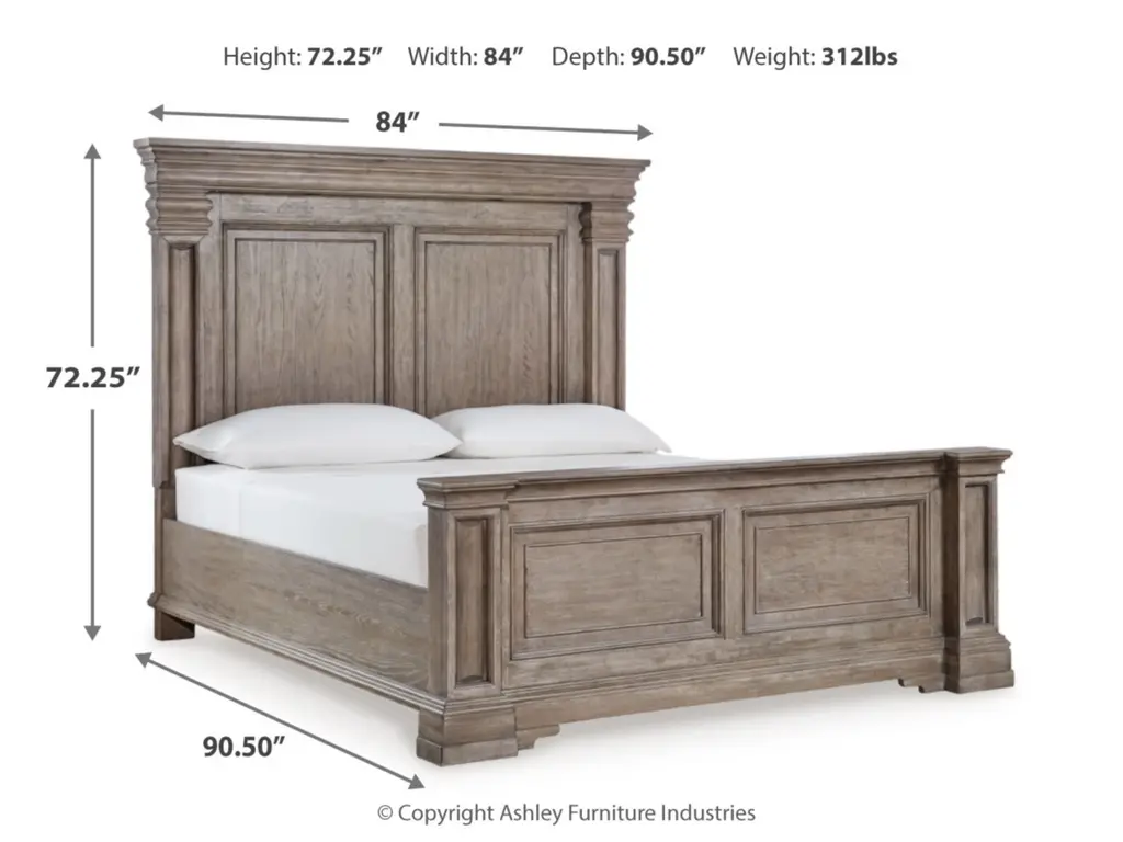 Discover something exceptional with the Blairhurst king panel bed. Its impressive mansion-style silhouette offers a casual traditional aesthetic embodied by classic-inspired decorative columns, inset framed panels and a relaxed grayish brown finish. Two overhead LED lights add cozy ambient lighting, exuding the calming mood you long for in the bedroom.