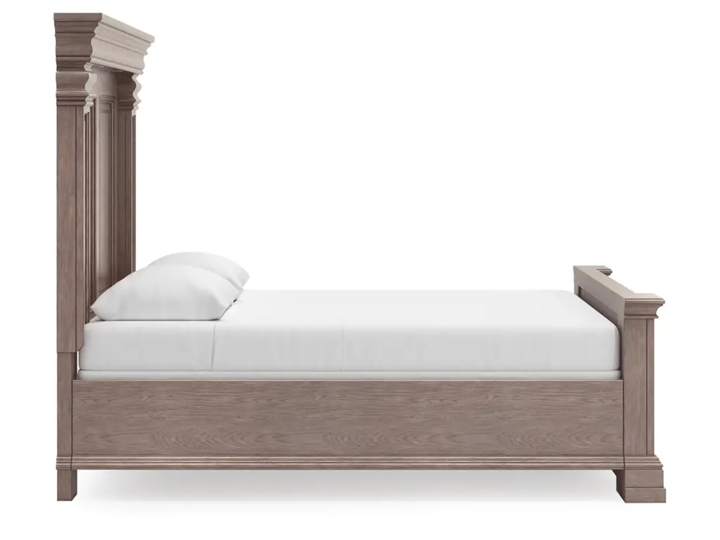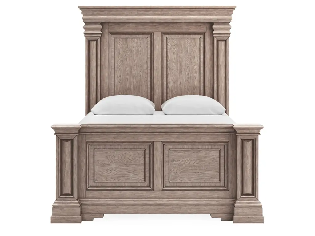 Discover something exceptional with the Blairhurst queen panel bed. Its impressive mansion-style silhouette offers a casual traditional aesthetic embodied by classic-inspired decorative columns, inset framed panels and a relaxed grayish brown finish. Two overhead LED lights add cozy ambient lighting, exuding the calming mood you long for in the bedroom.