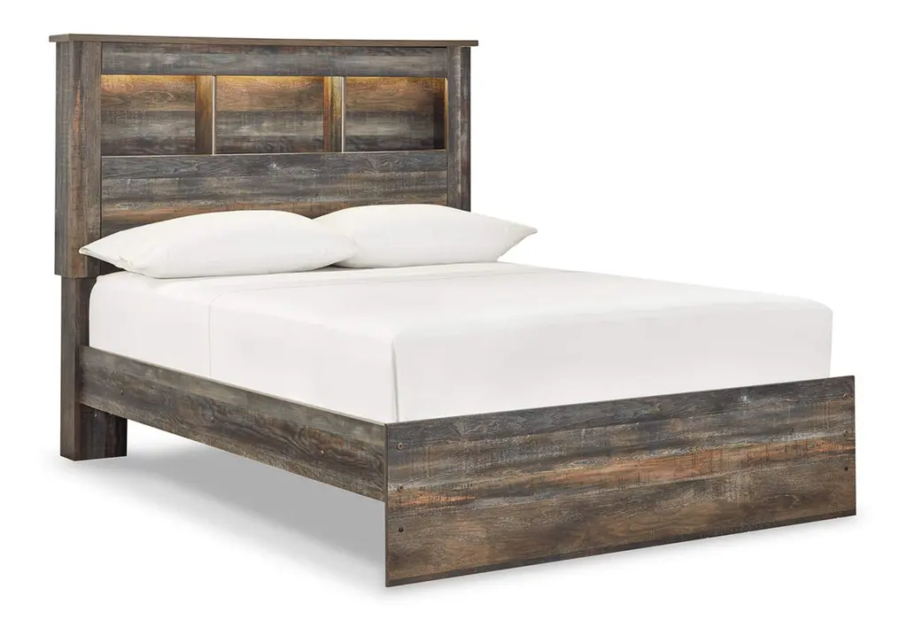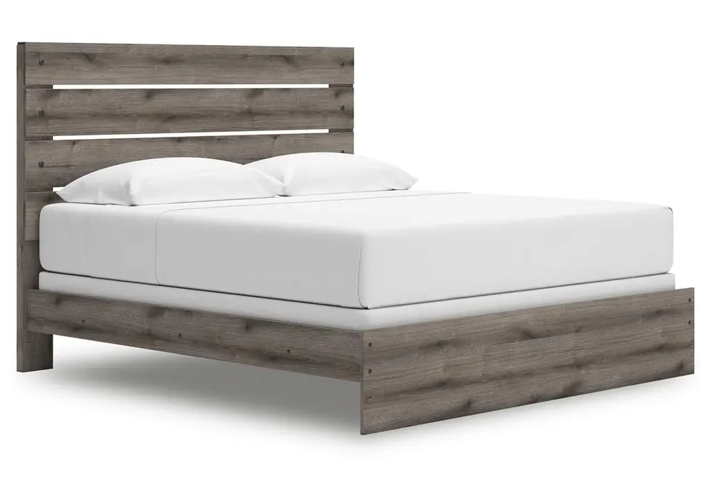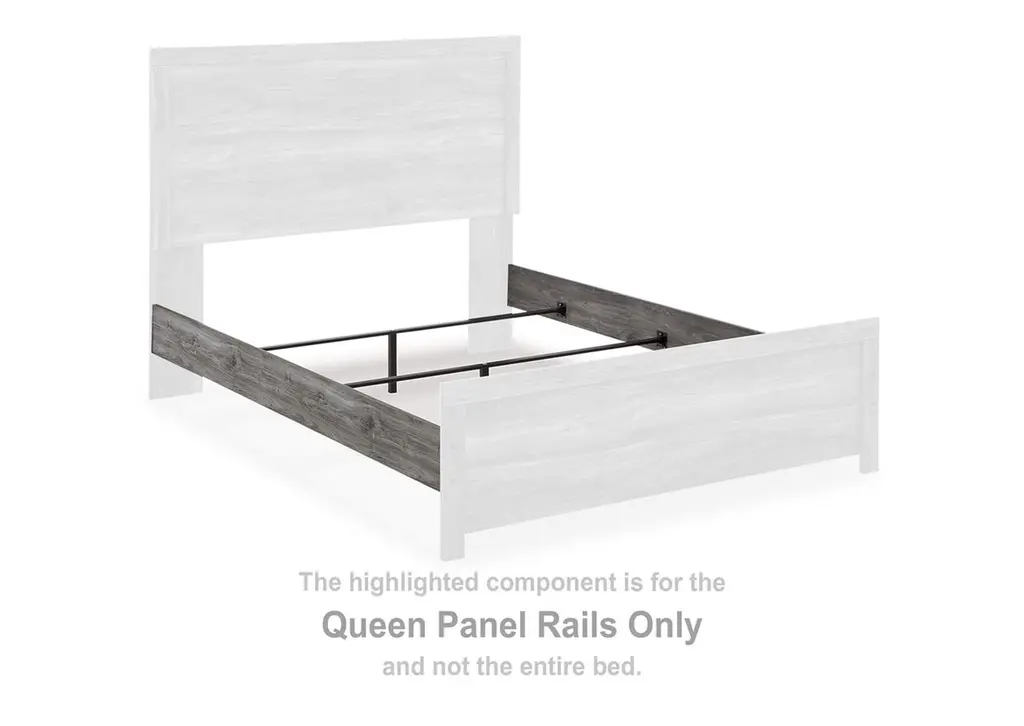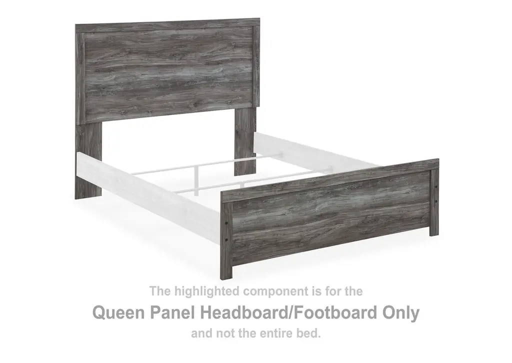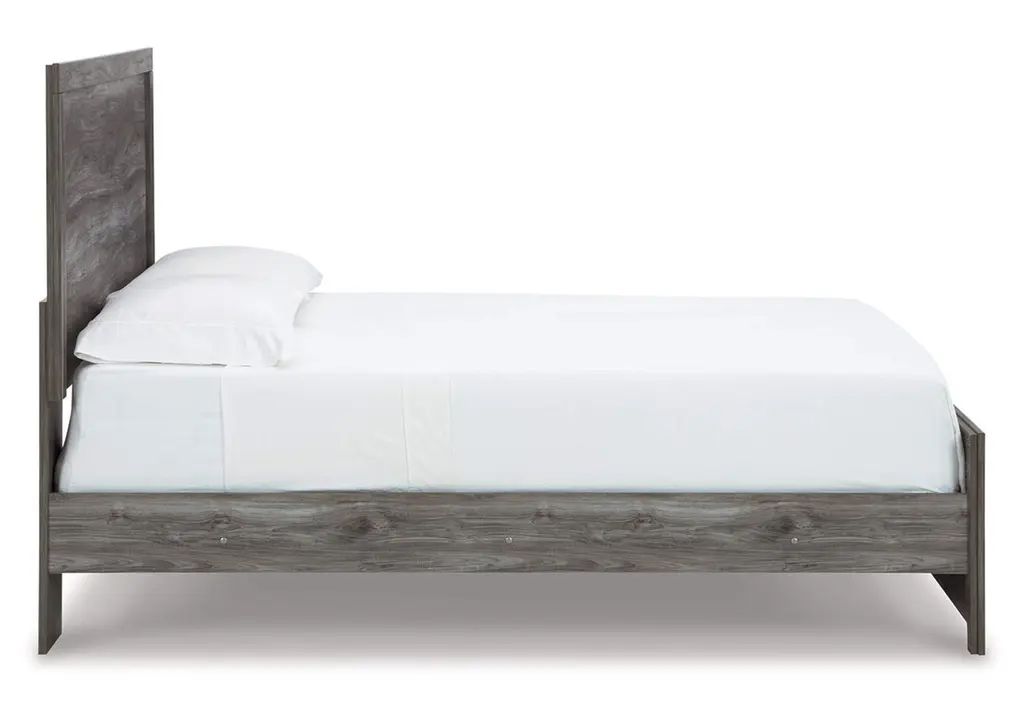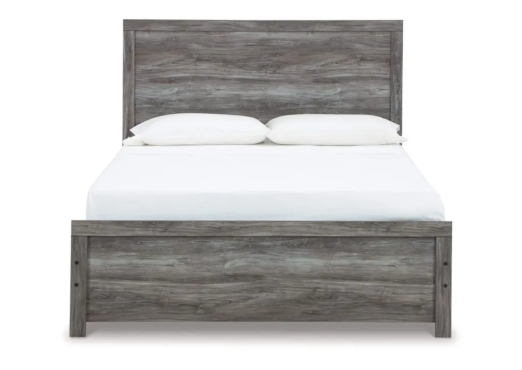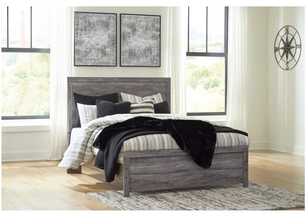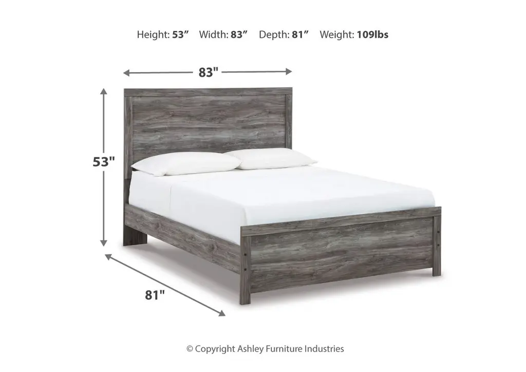 Alluring smoky gray hues create an ambiance that just feels right. The Bronyan queen panel bed has a charming wood-like appeal enriched by neutral tones and a textured look. Its calming presence brings a sense of serenity to your space. Weight 109.000 lbs. (49.05kgs.)