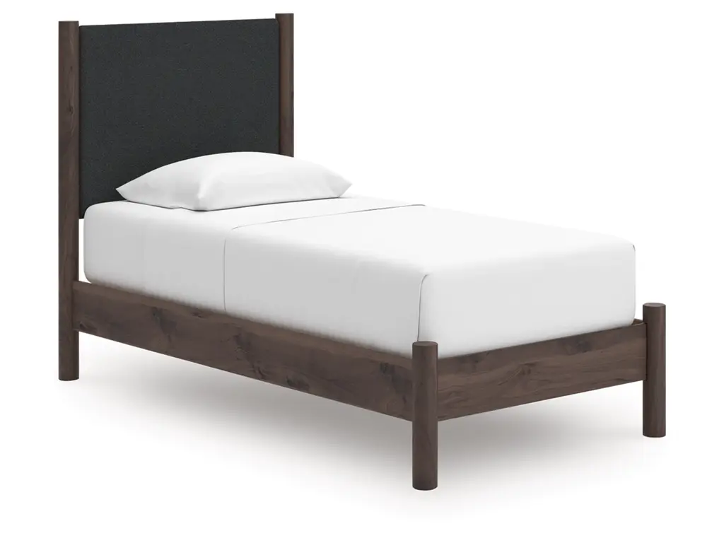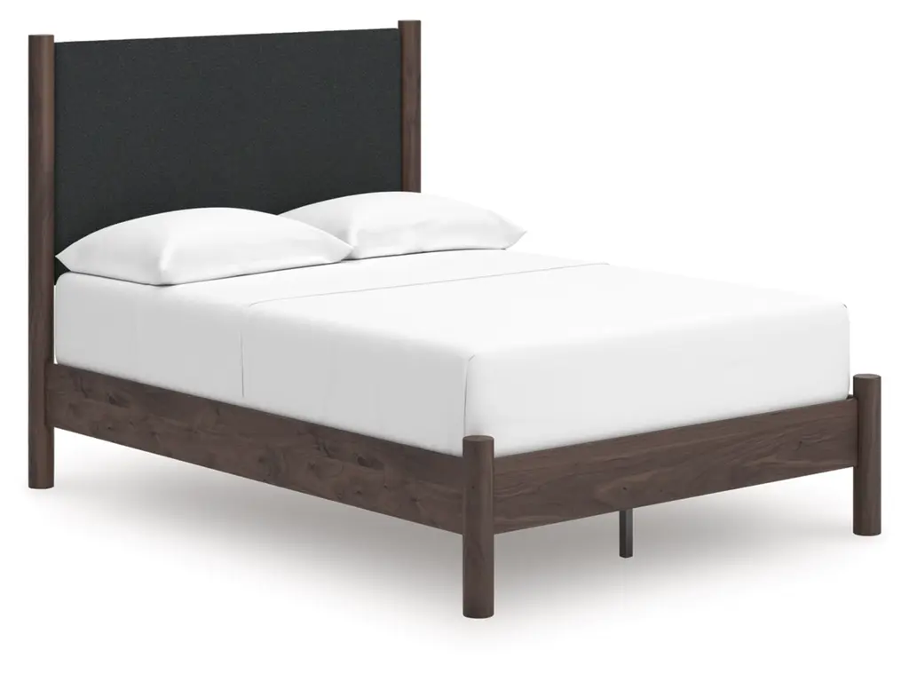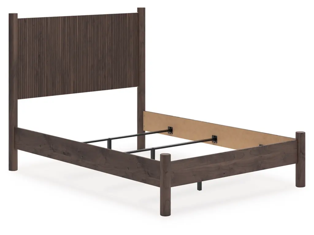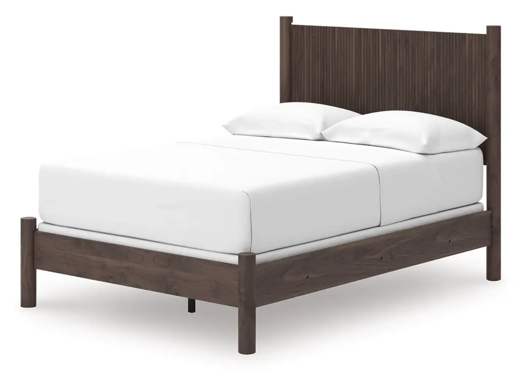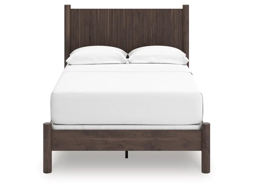 Crafted with both form and function in mind, the Cadmori full panel bed brings a dash of retro-cool character to your modern boho aesthetic. Its reeded headboard adds an on-trend touch to the classic silhouette. Warmly welcoming with a rich brown finish, this bed pairs well with muted hues, earth tones and other neutrals alike. What a refined take on easygoing style.