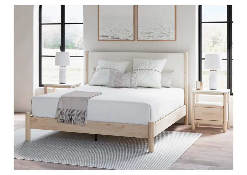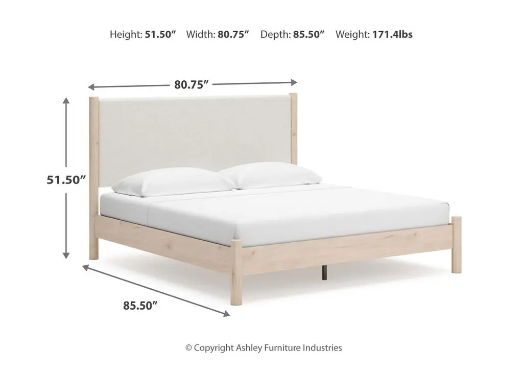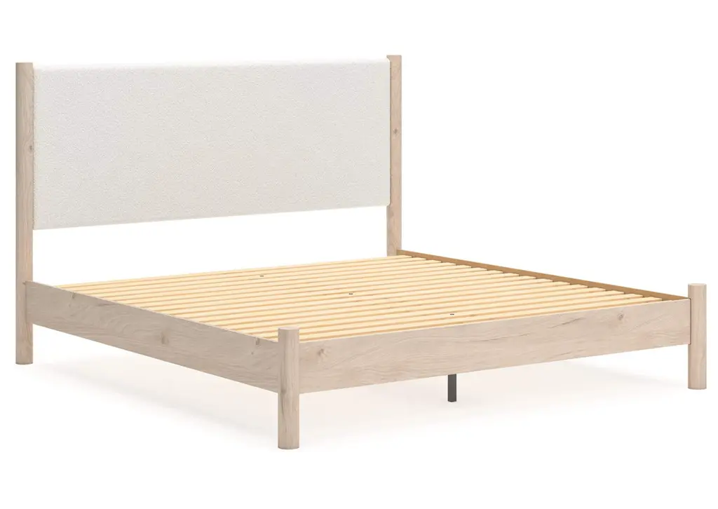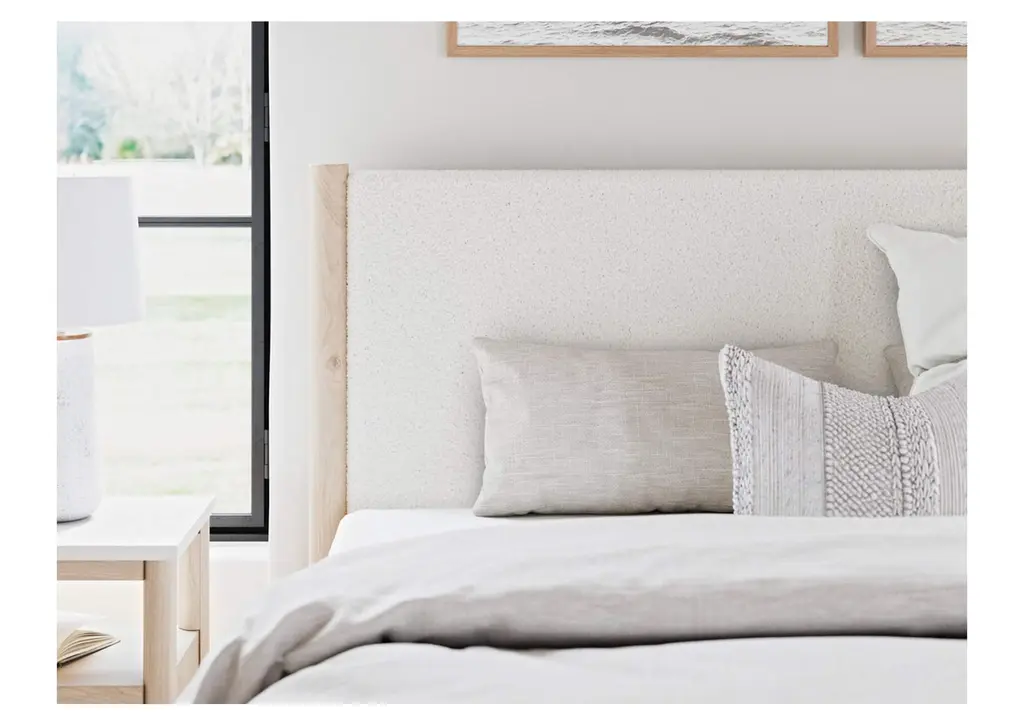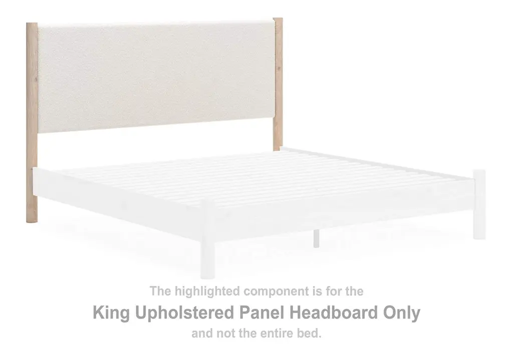Transform your bedroom with the Cadmori king upholstered panel bed. With clean lines and textured fabric, it exudes a minimal and sophisticated boho style. Tailor your space and create the perfect environment for sweet dreams. Weight 190.350 lbs. (85.66kgs.)
