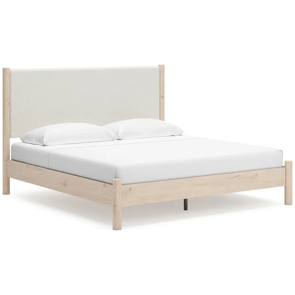 Add soft elegance to your bedroom with the Cadmori Upholstered Panel Bed. Available in Queen, King, and Full sizes, it features a neutral-toned fabric headboard and footboard framed by wood-look posts. Simple, modern, and perfect for a calm retreat.