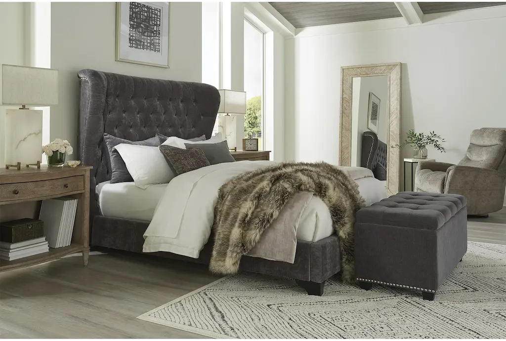 Cailey Charcoal King Upholstered Panel Bed