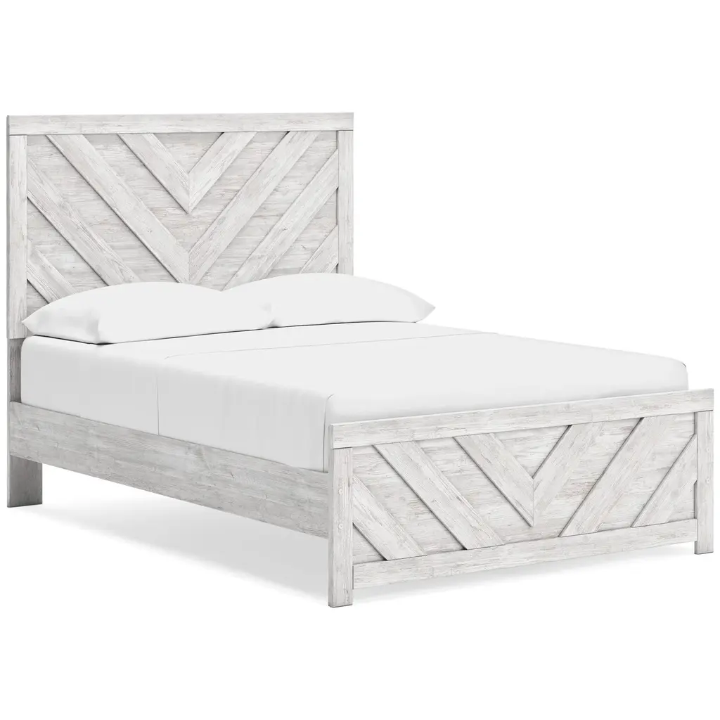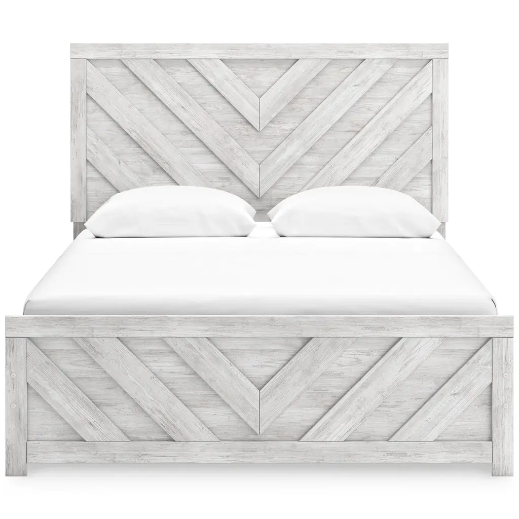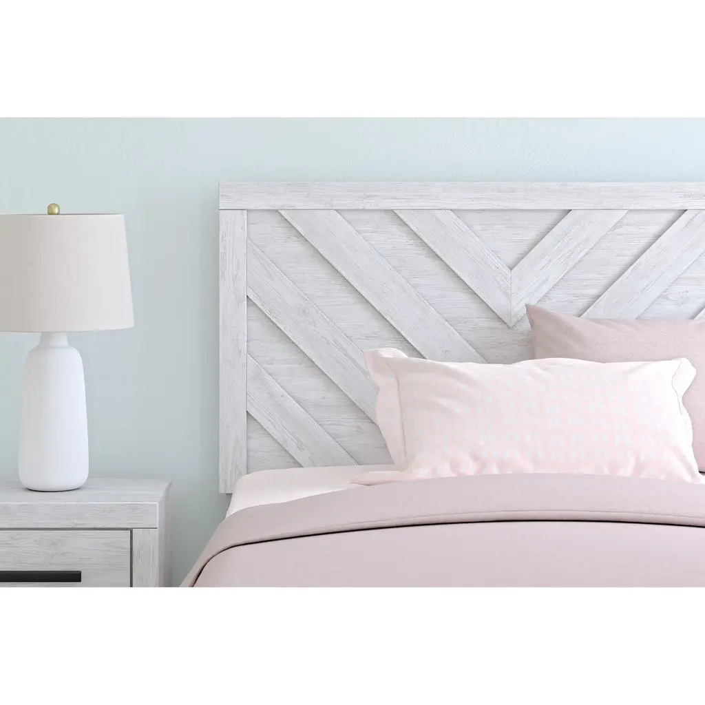 Charmingly designed, this twin panel bed embraces the aesthetics of countryside living and repurposes them for modern settings. Its whitewash paint appeals to your love of vintage character, while a chic chevron pattern on the headboard and footboard keeps your bedroom effortlessly on trend.