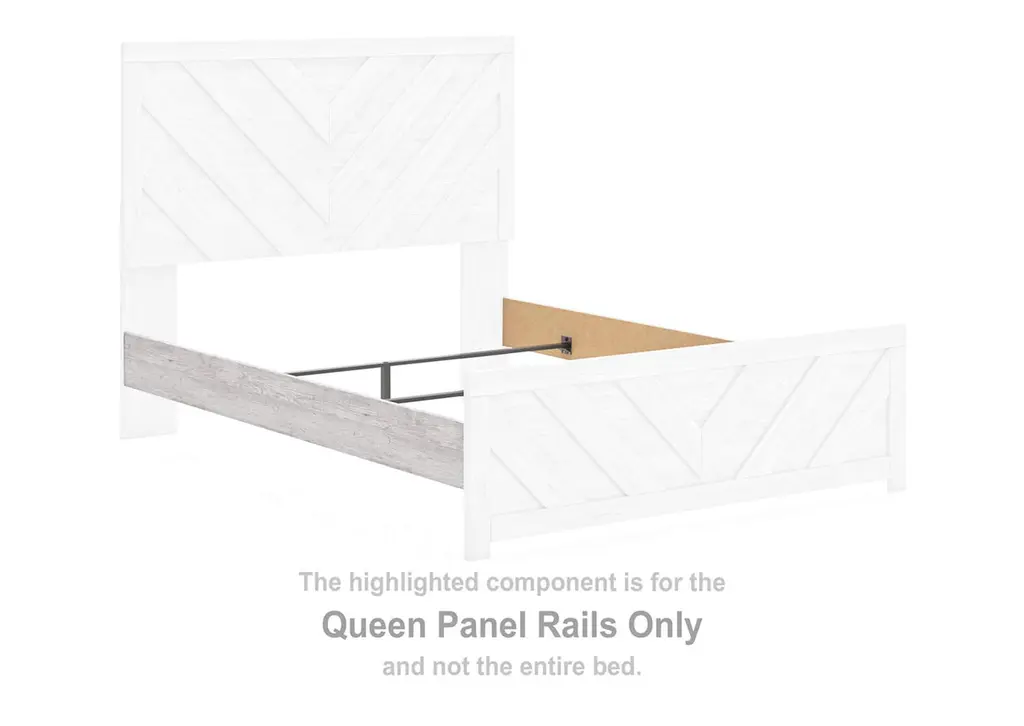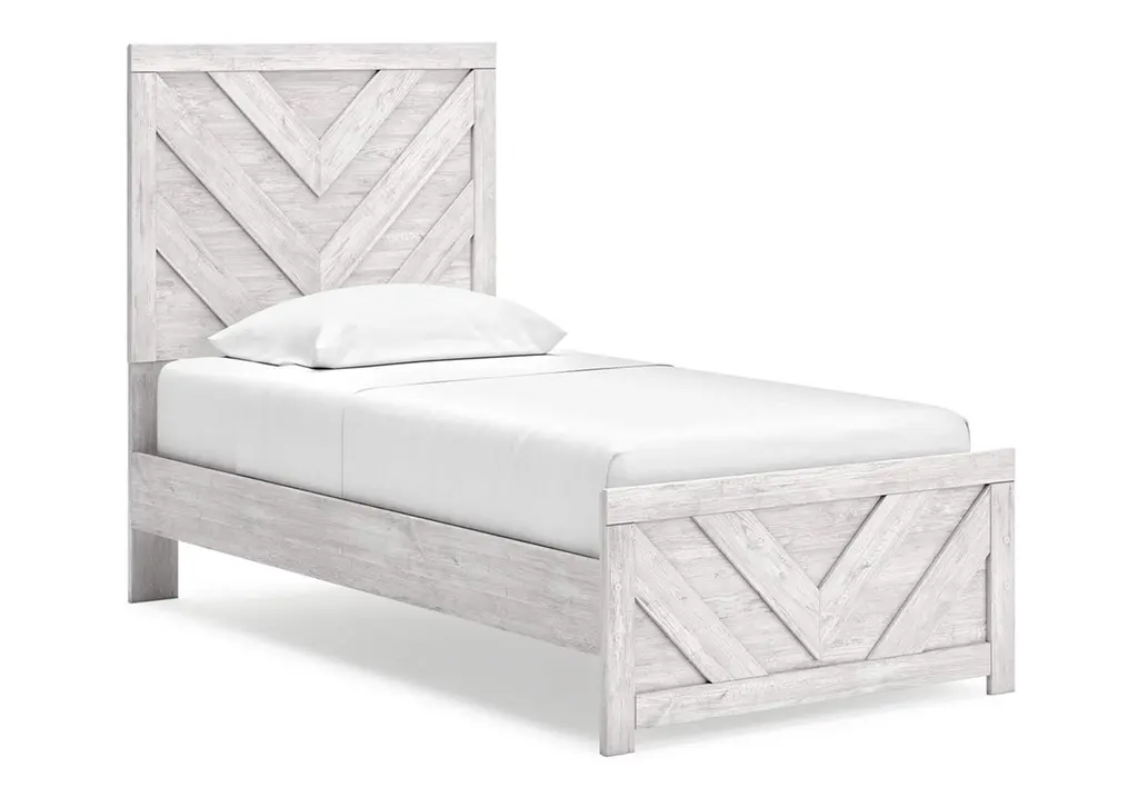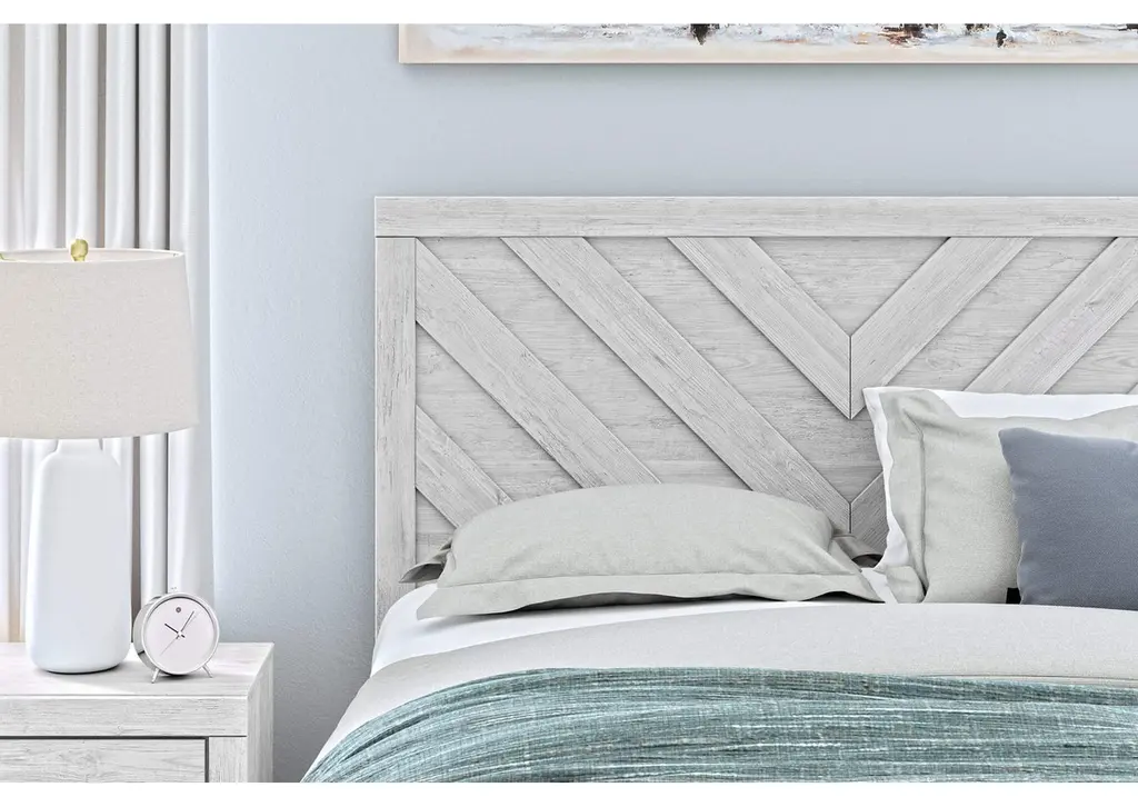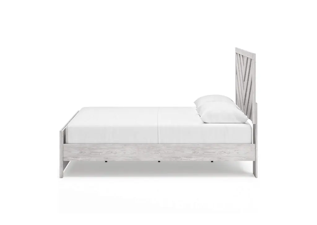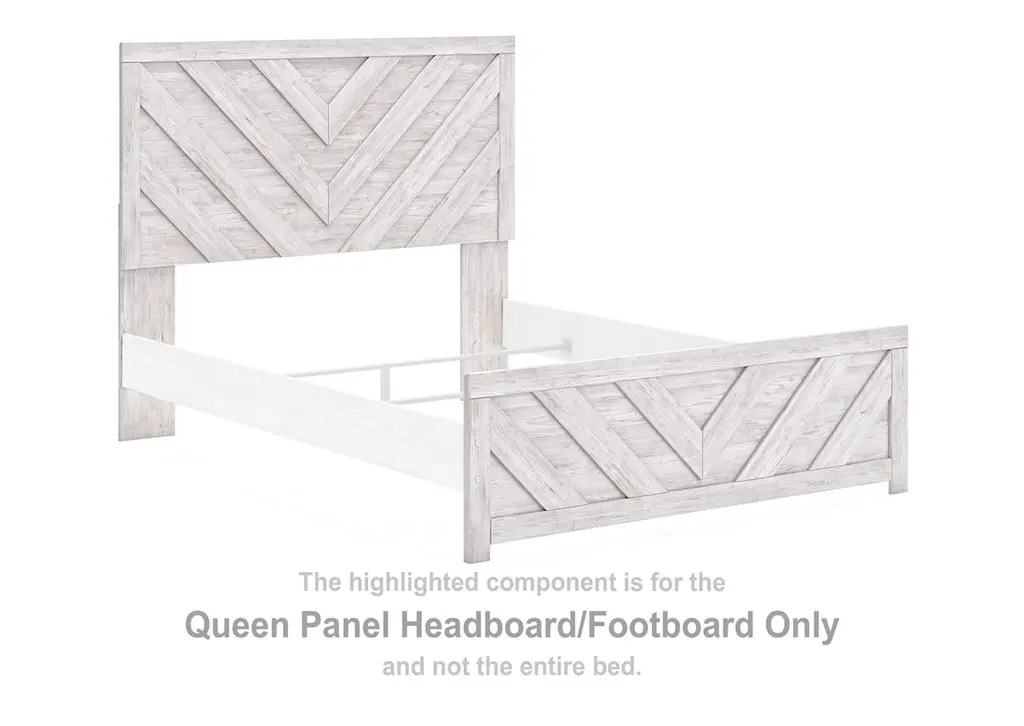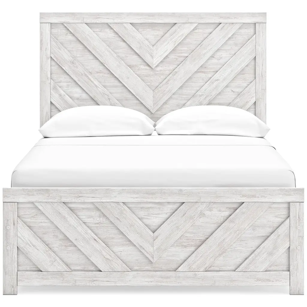 Charmingly designed, the Cayboni queen panel bed embraces the aesthetics of countryside living and repurposes them for modern settings. Its whitewash paint, replicating the wear and tear of time, appeals to your love of vintage character. And a chic chevron pattern on the headboard and footboard keeps your bedroom effortlessly on trend. Weight 134.000 lbs. (60.3kgs.)