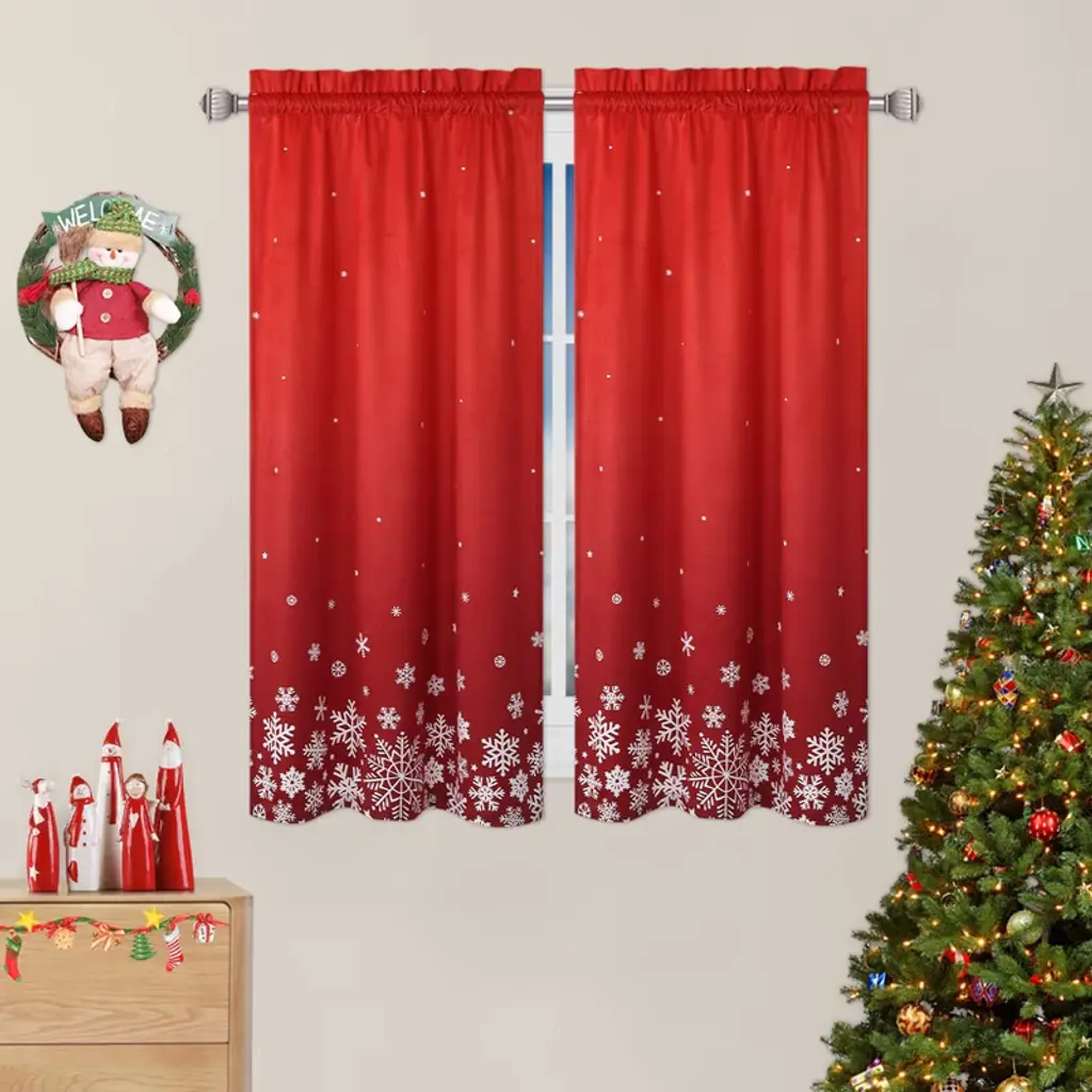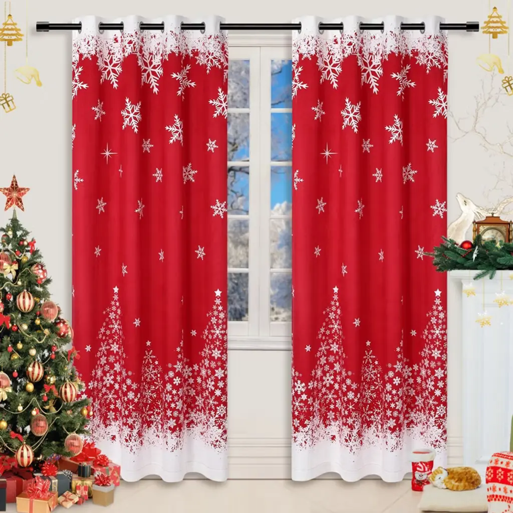 Are you dreaming of transforming your living space into a magical winter retreat this holiday season? Looking for Christmas decorations that are both elegant and easy to use? Can you picture the warm glow and festive spirit that red velvet curtains with snowflakes and Christmas trees would bring to your windows? Wouldn't it be wonderful to enjoy privacy, cozy comfort, and a touch of luxury all at once? Tired of fussy decor that's hard to install or maintain? What if you could simply hang these rich velvet panels and watch your home come to life for family and friends? Isn't it time to make this Christmas unforgettable, right from your window?