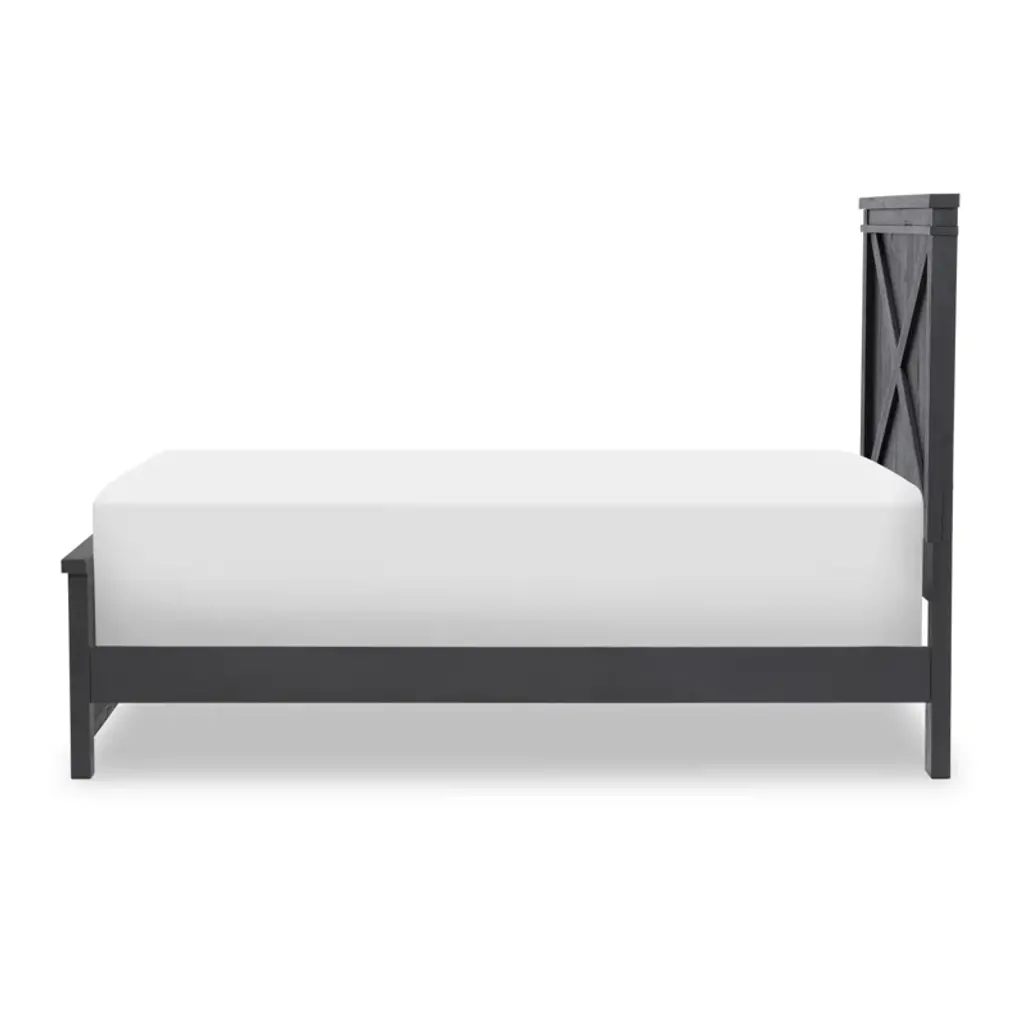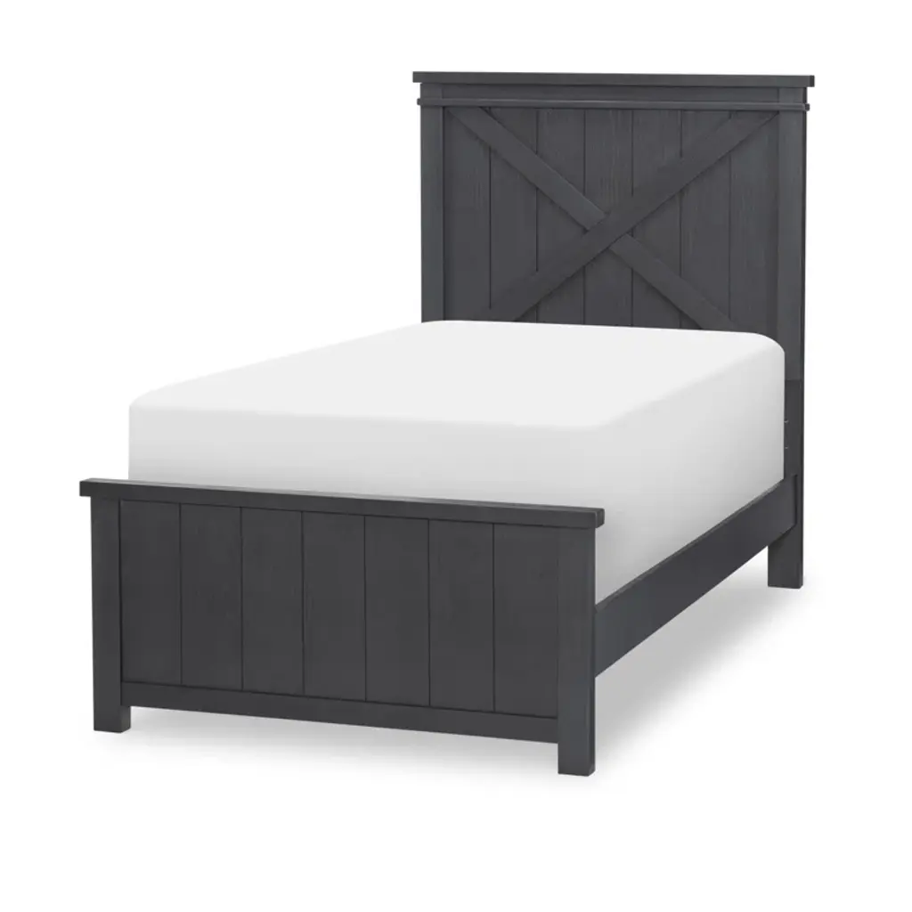 Rustic, comfortable, yet modern. Clean lines combine with natural textures and dark tones to create the Annitra youth collection. Modern farmhouse designs such as block feet, flat drawer fronts, and X motifs on side panels offer a lot of details without feeling cluttered. The natural variations of the grain and rich Midnight finish offer a casual, livable style. Simple Antique Brass finished bar pull and knob hardware completes each piece.