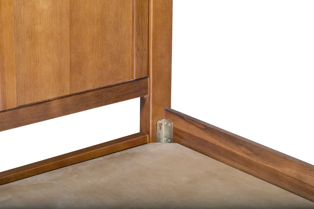 Our Mission / Arts & Crafts style furniture is made with attention to detail and expertise like that of 100 year old Stickley. - Mortise and Tenon construction - Solid quarter sawn white oak - Michael's Cherry stain with a hand rubbed finish - Sturdy solid panel bed design Product Dimensions: Queen Size Bed Dimensions: King size bed frame: 86.25"w 80.75"d 45"h