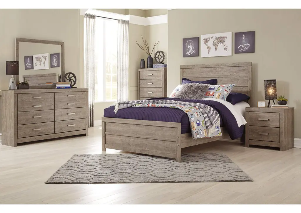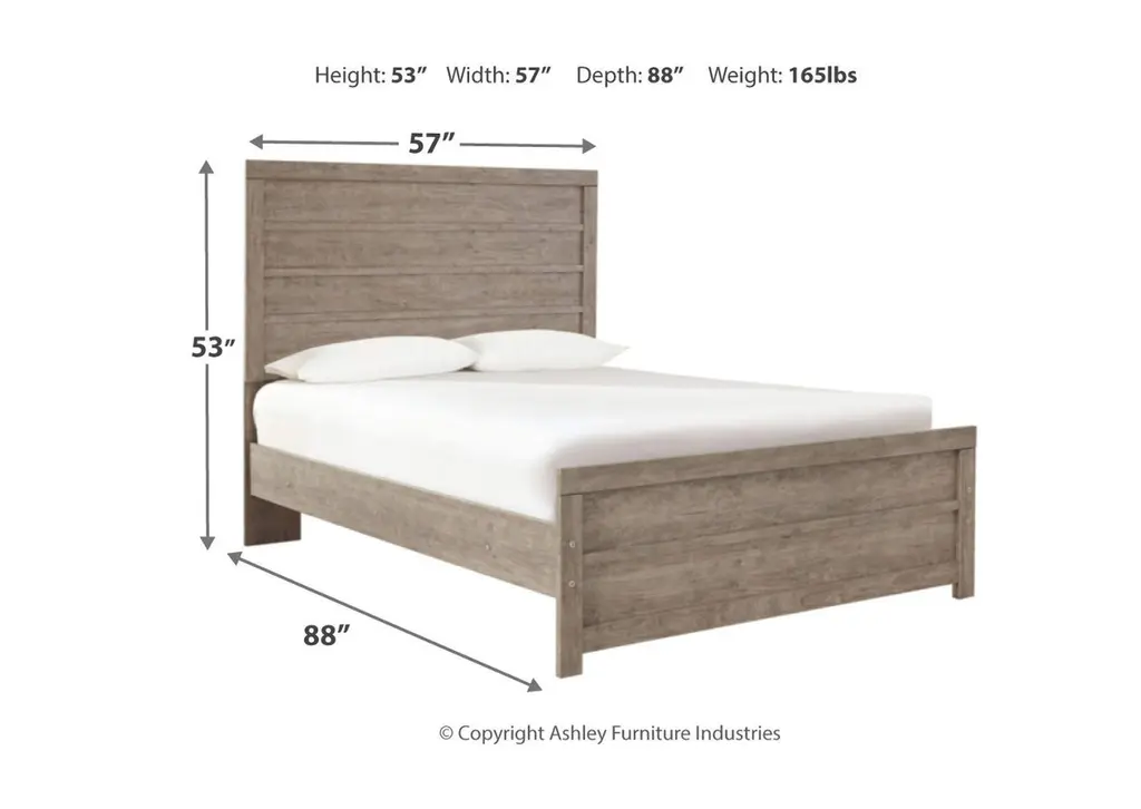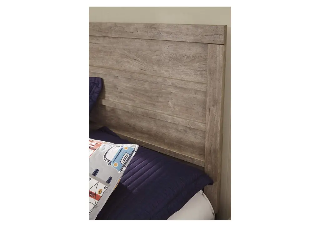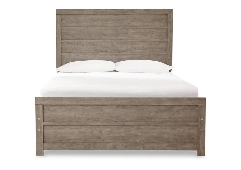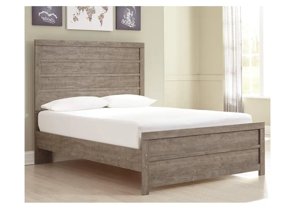 The Culverbach full panel bed’s weathered driftwood finish evokes such an ethereal vibe—exactly what you need for a serene bedroom suite. Chunky moulding creates a plank-like effect while clean lines make for a timeless look you’ll love living with for years to come. Mattress and foundation/box spring available, sold separately. Weight 100.000 lbs. (45kgs.)
