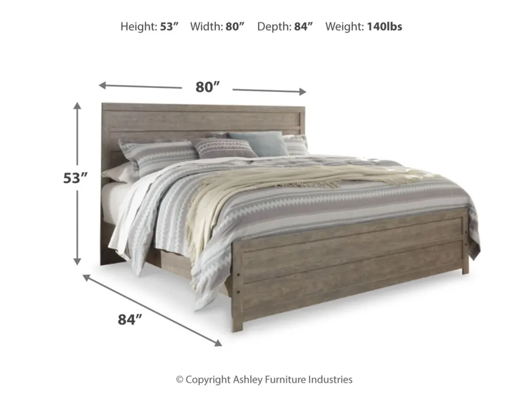 The Culverbach king panel bed’s weathered driftwood finish evokes such an ethereal vibe—exactly what you need for a serene bedroom suite. Chunky moulding creates a plank-like effect while clean lines make for a timeless look you’ll love living with for years to come. Mattress and foundation/box spring available, sold separately.
