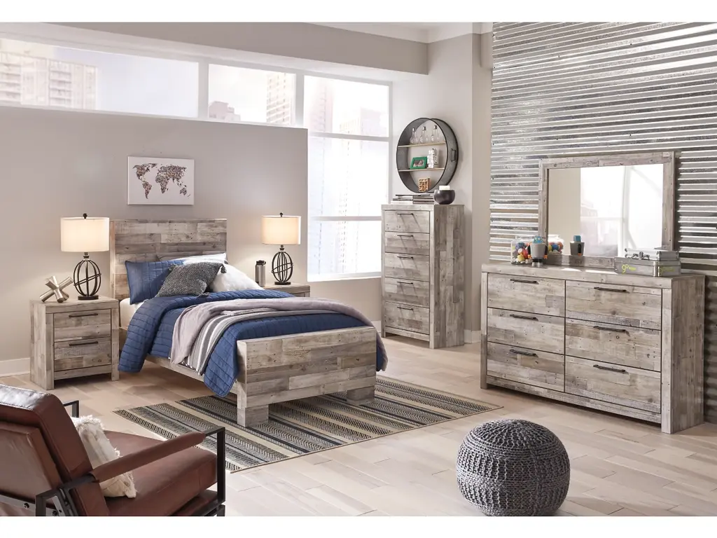 Butcher block has long been a staple in the kitchen, but the Effie twin panel bed transforms it into something fresh and new in the bedroom. A vintage whitewashed finish over replicated wood grain lends an urban farmhouse aesthetic to your restful retreat. Mattress and foundation/box spring available, sold separately.