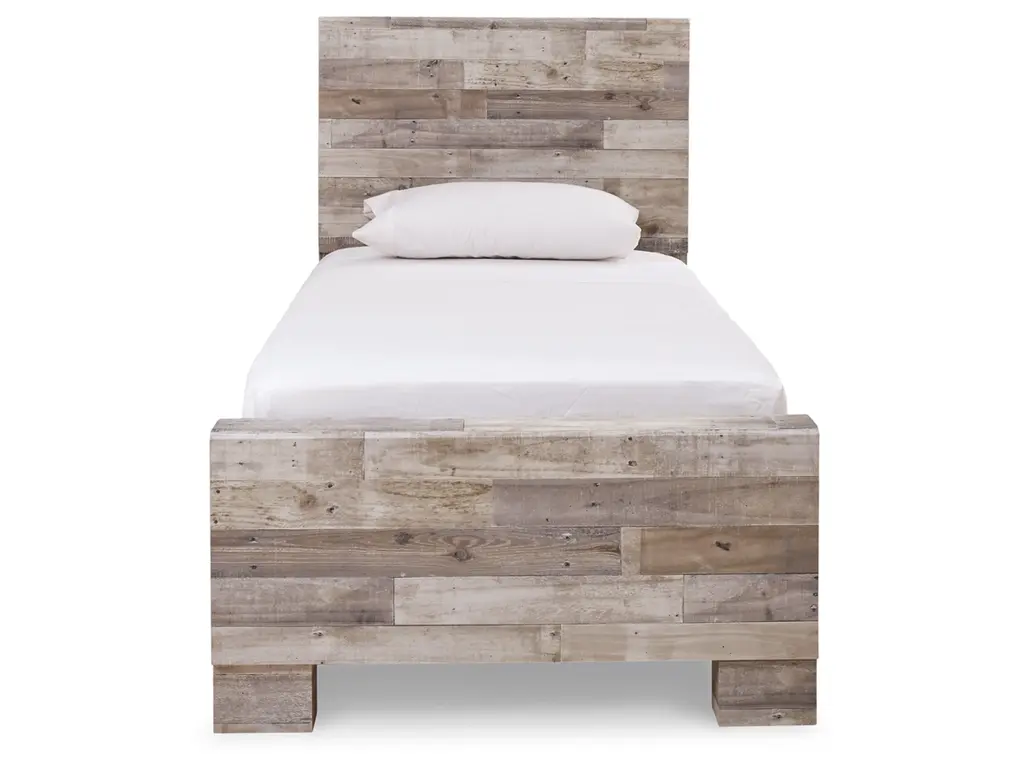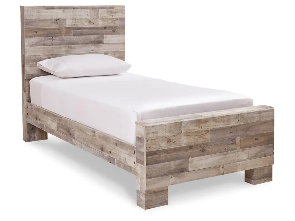 Butcher block has long been a staple in the kitchen, but the Effie twin panel bed transforms it into something fresh and new in the bedroom. A vintage whitewashed finish over replicated wood grain lends an urban farmhouse aesthetic to your restful retreat. Mattress and foundation/box spring available, sold separately.