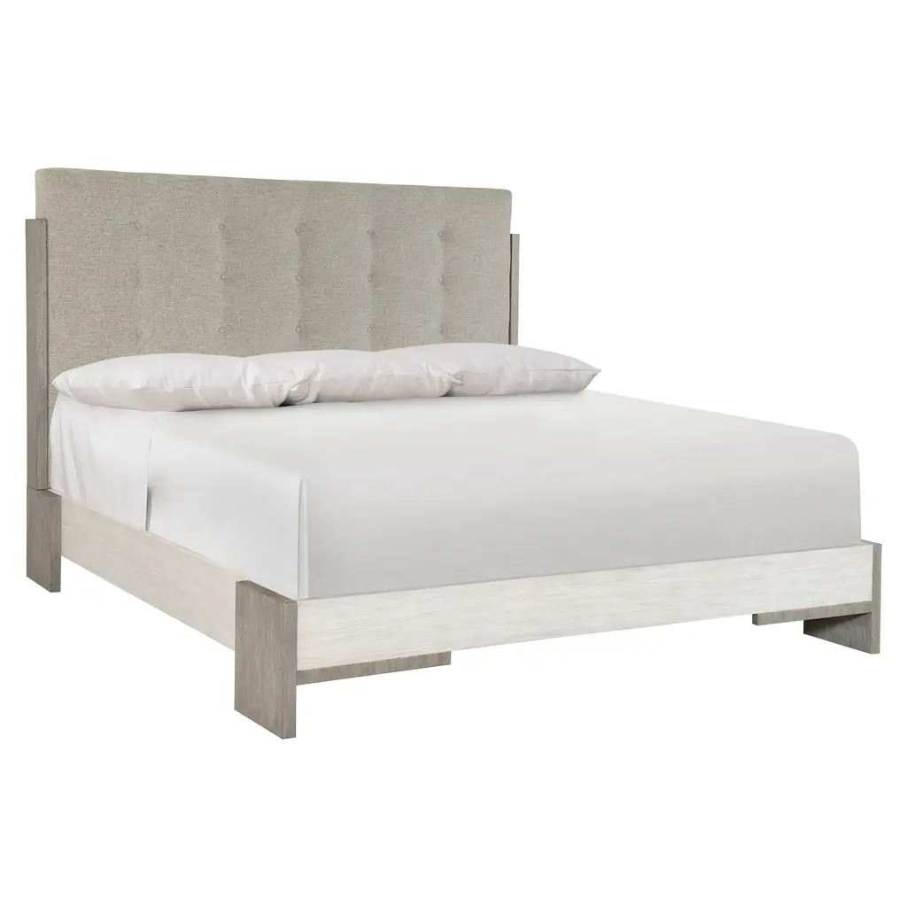 Foundations is a new, refined expression of modern rustic, defined by a minimalist style and relaxed comfort. Highlighted by a button-tufted headboard and a sleek, architectural acacia wood frame, the Foundations bed transforms any bedroom into a cozy haven. Clean lines and intersecting planes merge to create a look that exudes remarkable calm and tranquility.