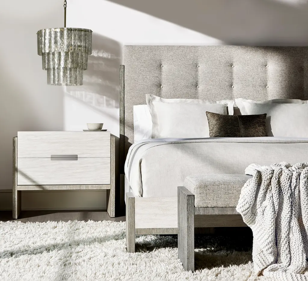 Foundations is a new, refined expression of modern rustic, defined by a minimalist style and relaxed comfort. Highlighted by a button-tufted headboard and a sleek, architectural acacia wood frame, the Foundations bed transforms any bedroom into a cozy haven. Clean lines and intersecting planes merge to create a look that exudes remarkable calm and tranquility.