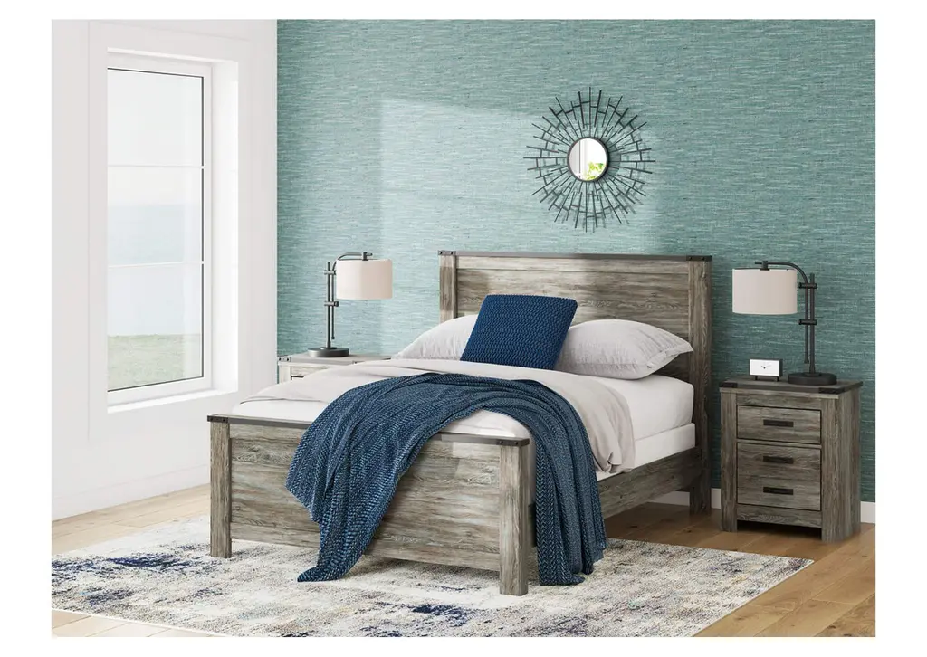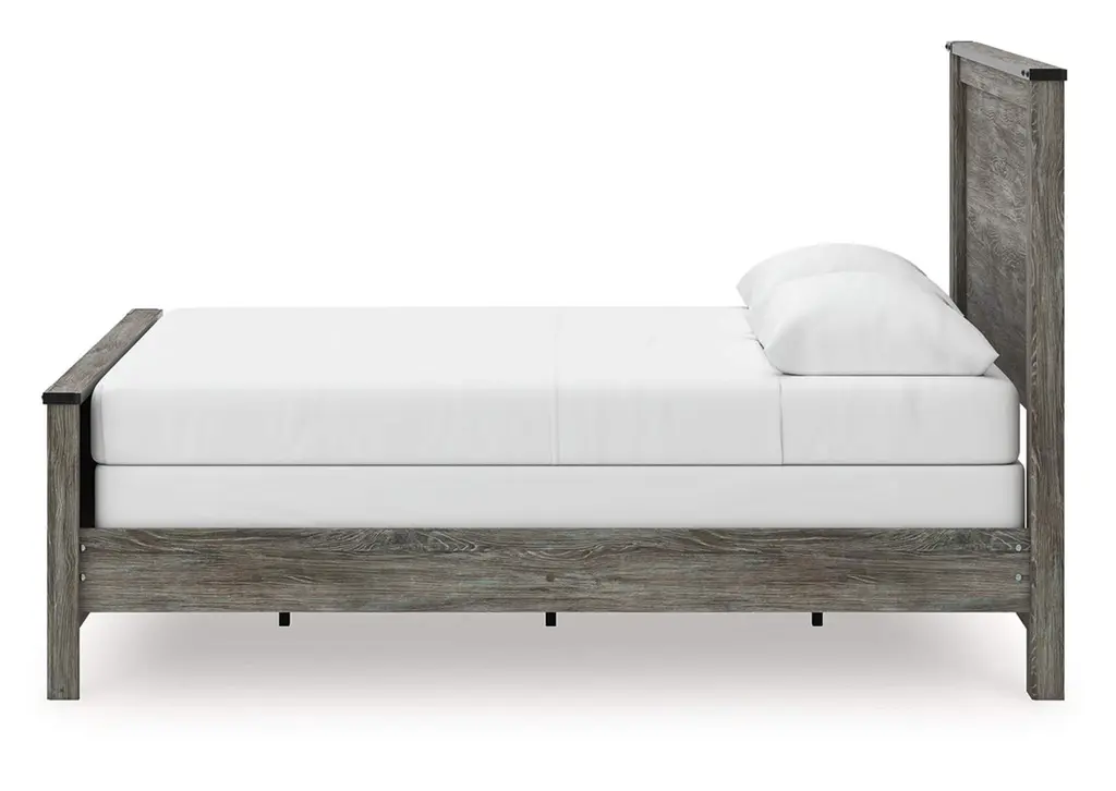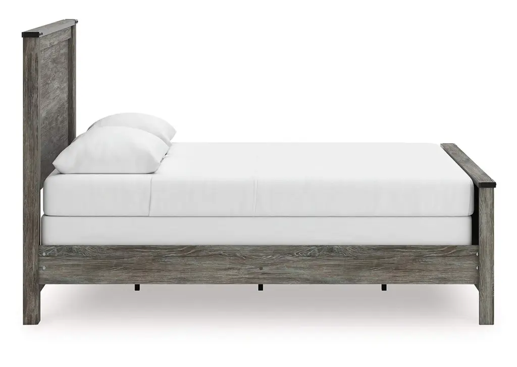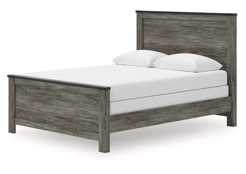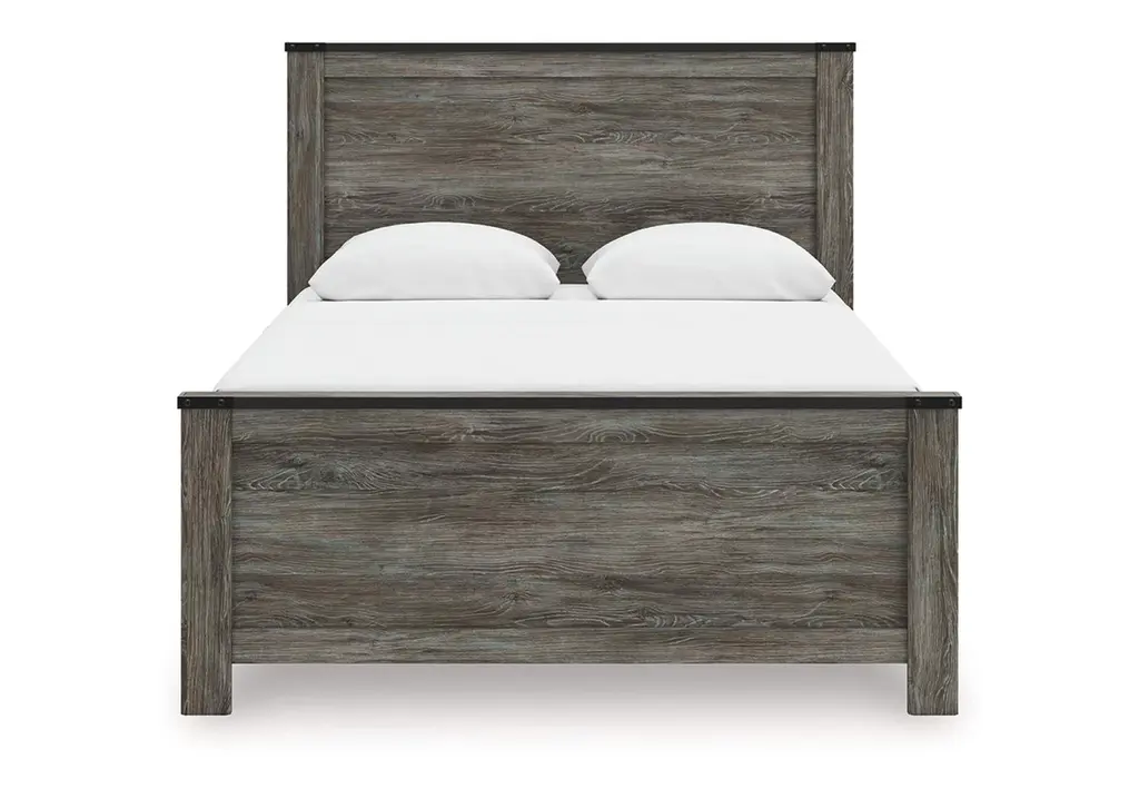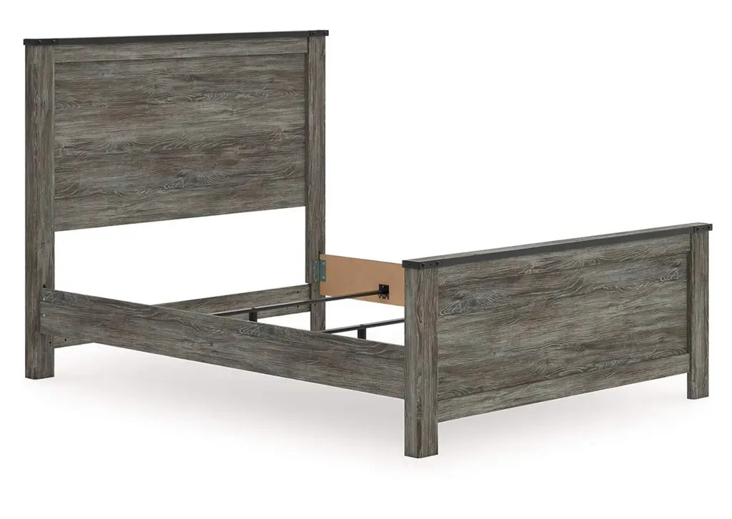 Cool, casual style is for all ages. With the Frandern queen panel bed, they get the function they need plus the refined design you love. Approachably neutral in a rustic warm gray, it’s adaptable enough to pair with an assortment of existing colors and room decor. And the bed's faux metal detailing with nailhead accents lends an industrial edge. Weight 153.000 lbs. (68.85kgs.)