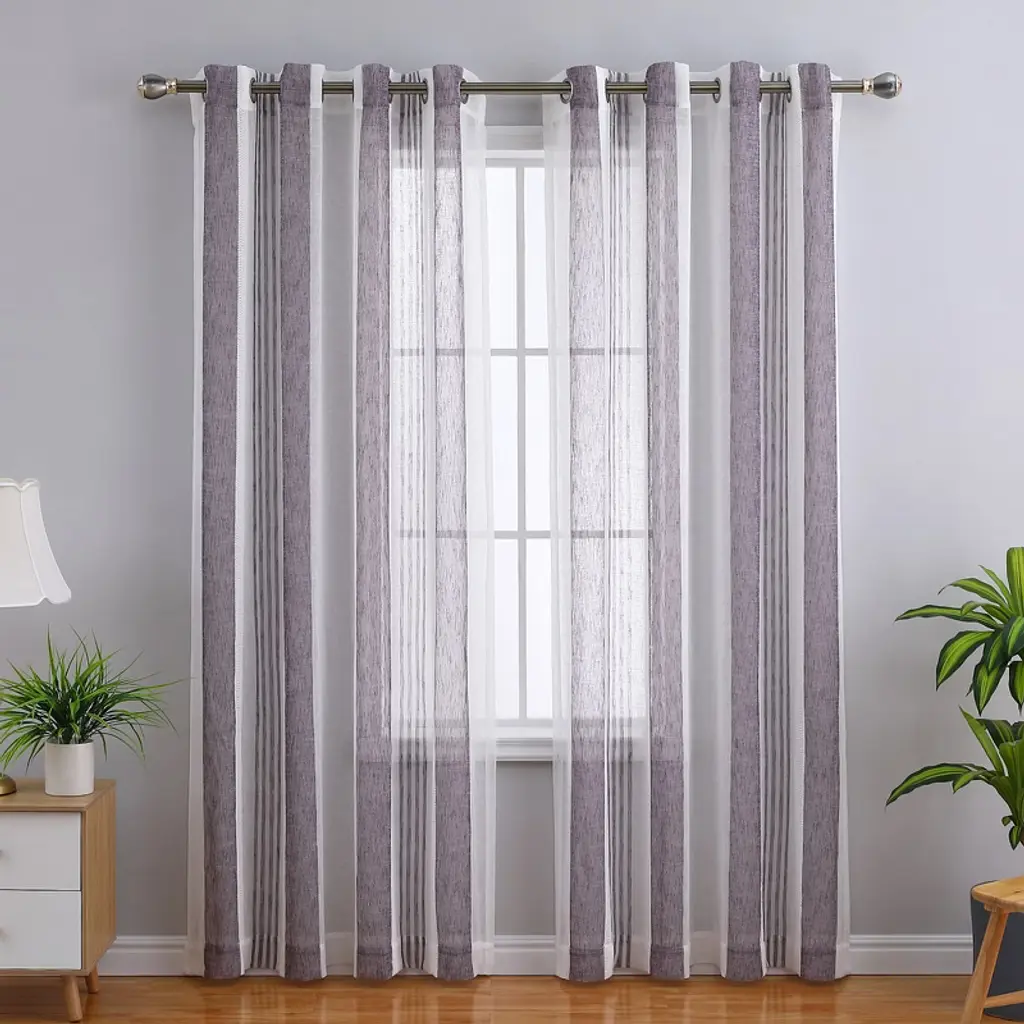 Garvee Sheer Stripe Curtains For Living Room Bedroom Window Grommet Voile Drapes, 2 Panels