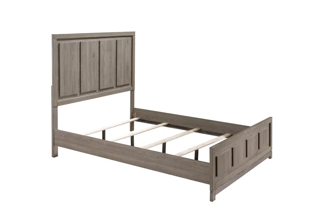 Embrace the modern aesthetic with the Hendricks Grey King Panel Bed. Its light oak finish adds a soft touch to your bedroom, combining style and comfort. This bed is crafted with melamine veneer and solid rubberwood, ensuring durability and a timeless appeal. Ideal for an Eastern King mattress, it provides a spacious and restful sleeping experience.