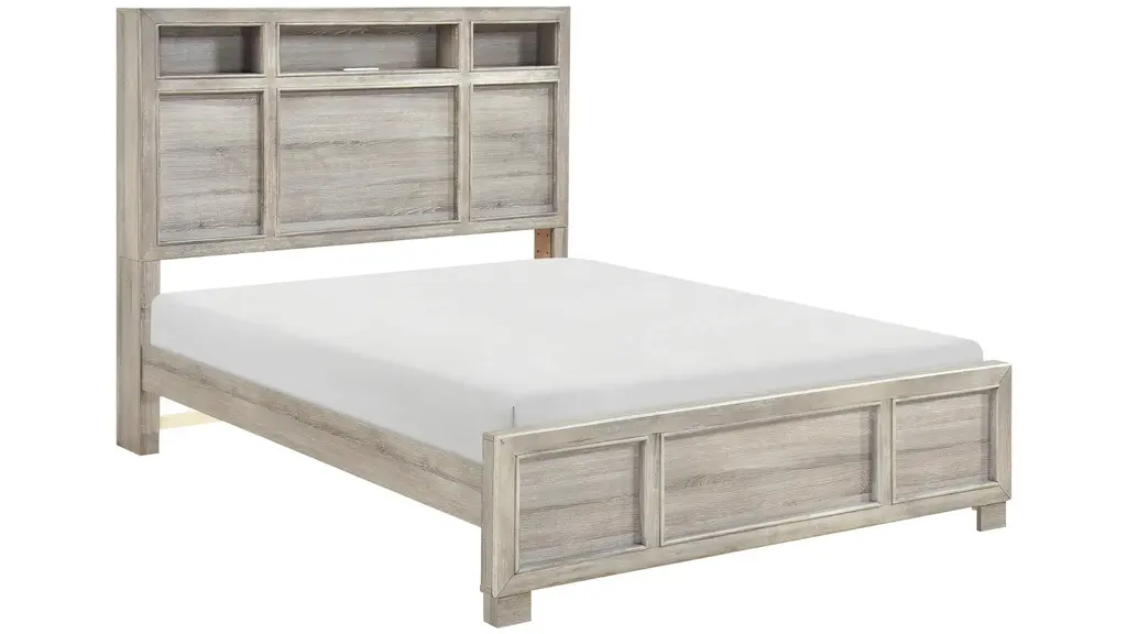 Jaxon Grey California King Wood Panel Bed | Adjustable Base Compatible