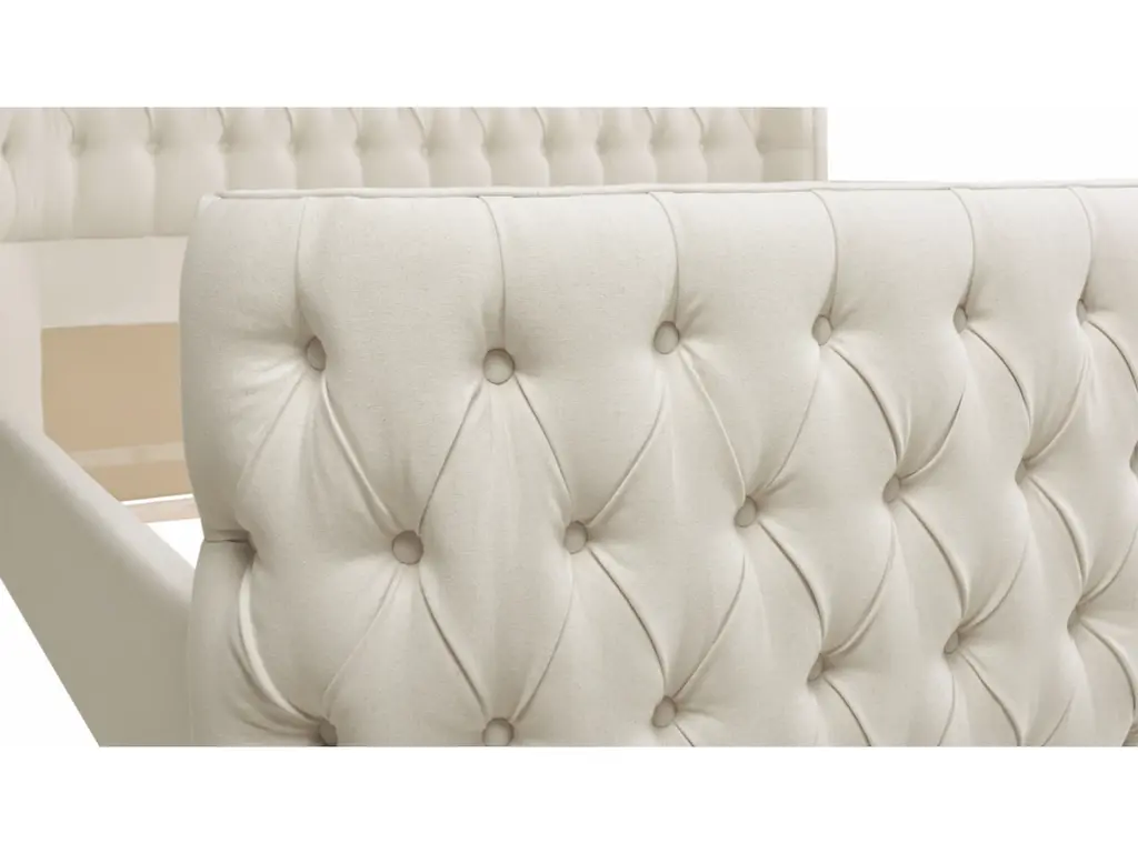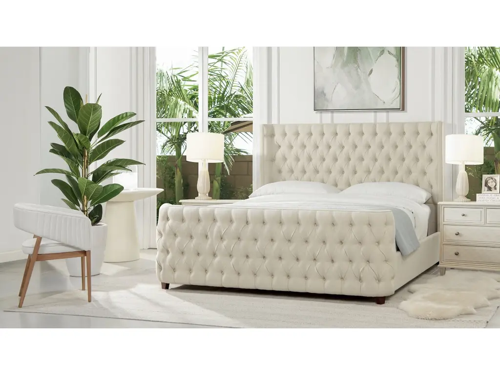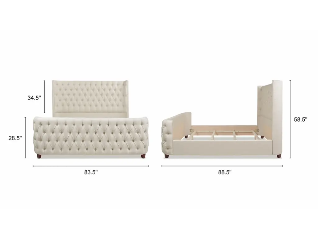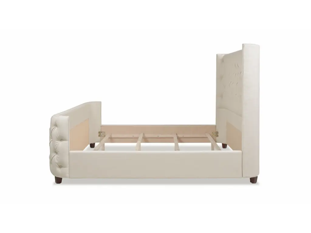 A bed fit for royalty, the Brooklyn Panel Bed Collection by Jennifer Taylor Home brings glam and style to any bedroom in your home. Crafted beautifully with a tall, wrap-around shelter silhouette, accented with diamond hand tufts along the entire headboard and matching footboard, the Brooklyn is an ideal choice for your master bedroom suite. The headboard, footboard, side rails, and center support slats all come included. The Brooklyn is available in a wide variety of lush colors and textures including velvet, linen, and faux leather.