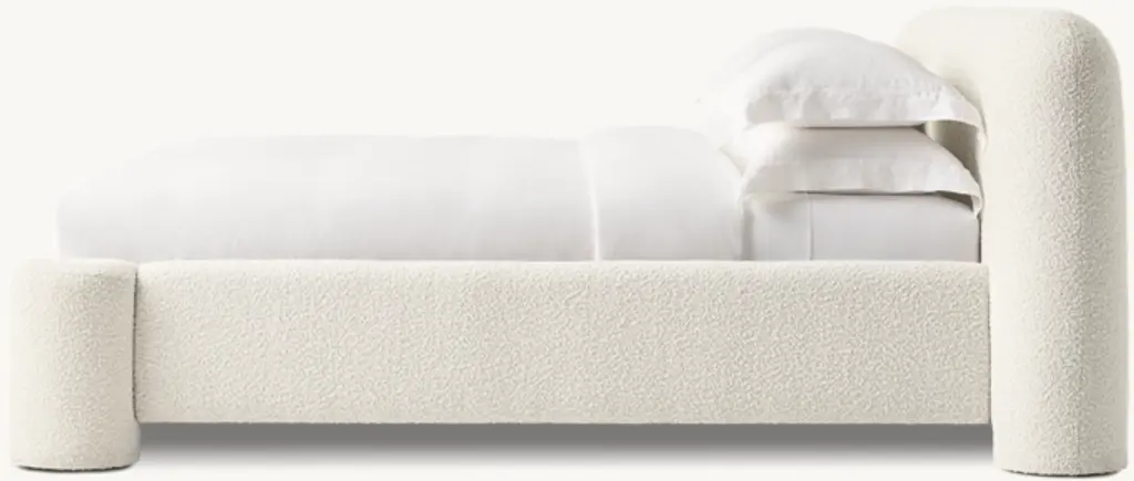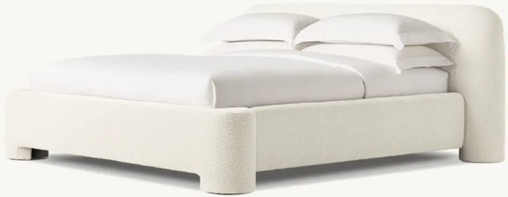 Modern minimalism meets relaxed luxury in the Lila bed. Hand built on a bold scale, the linear silhouette is softened by sculptural curves at the headboard and corner posts, while ultra-plush cushioning and tailored upholstery lend sumptuous comfort.