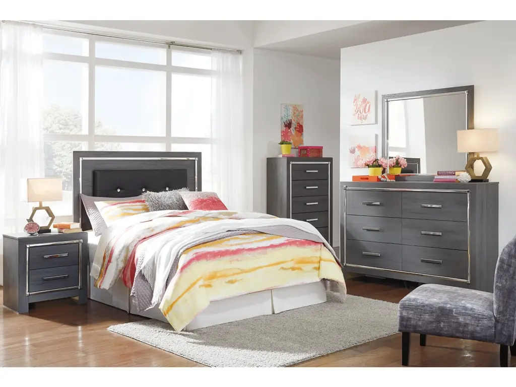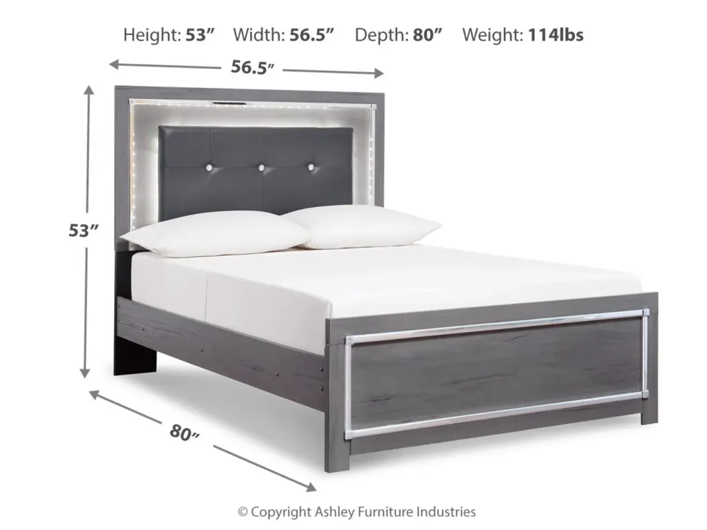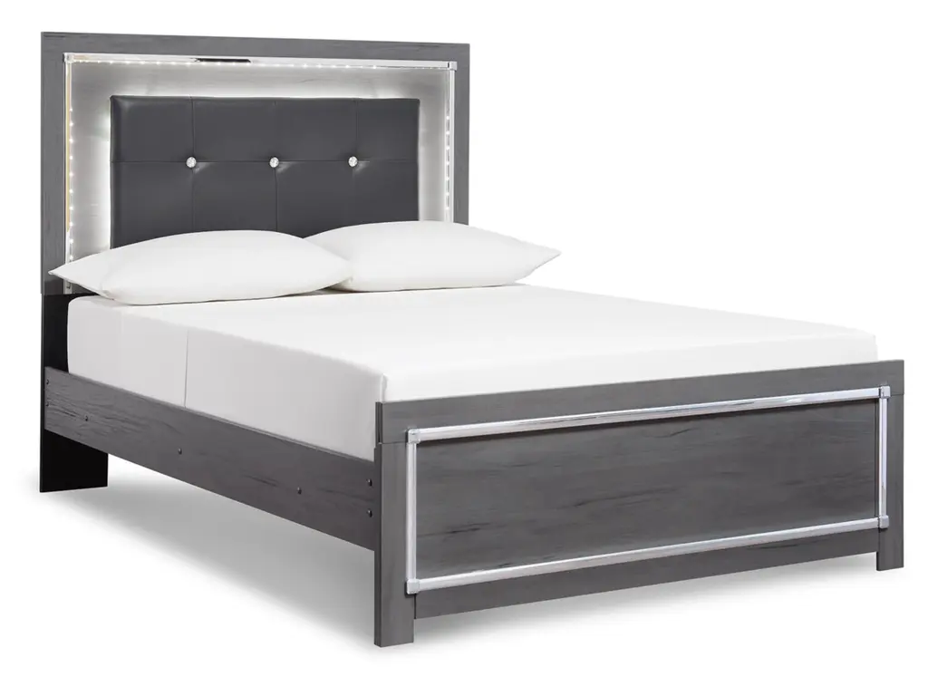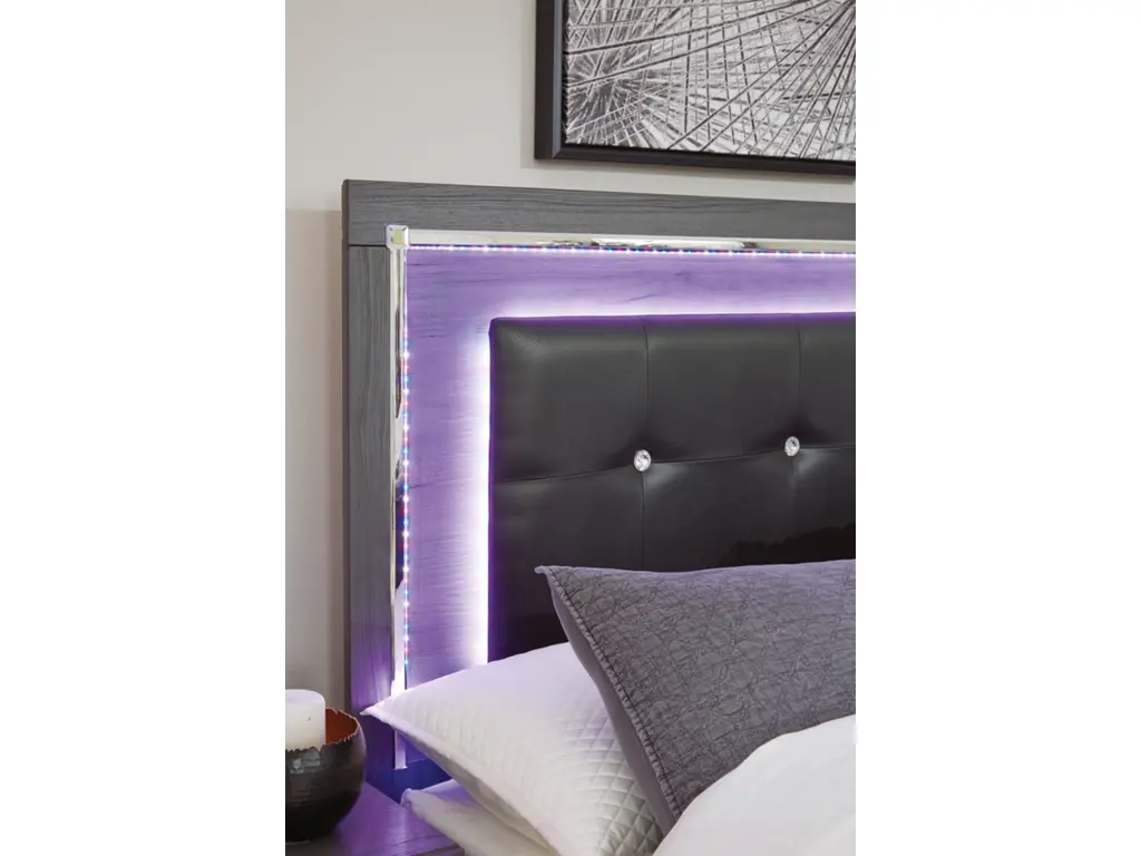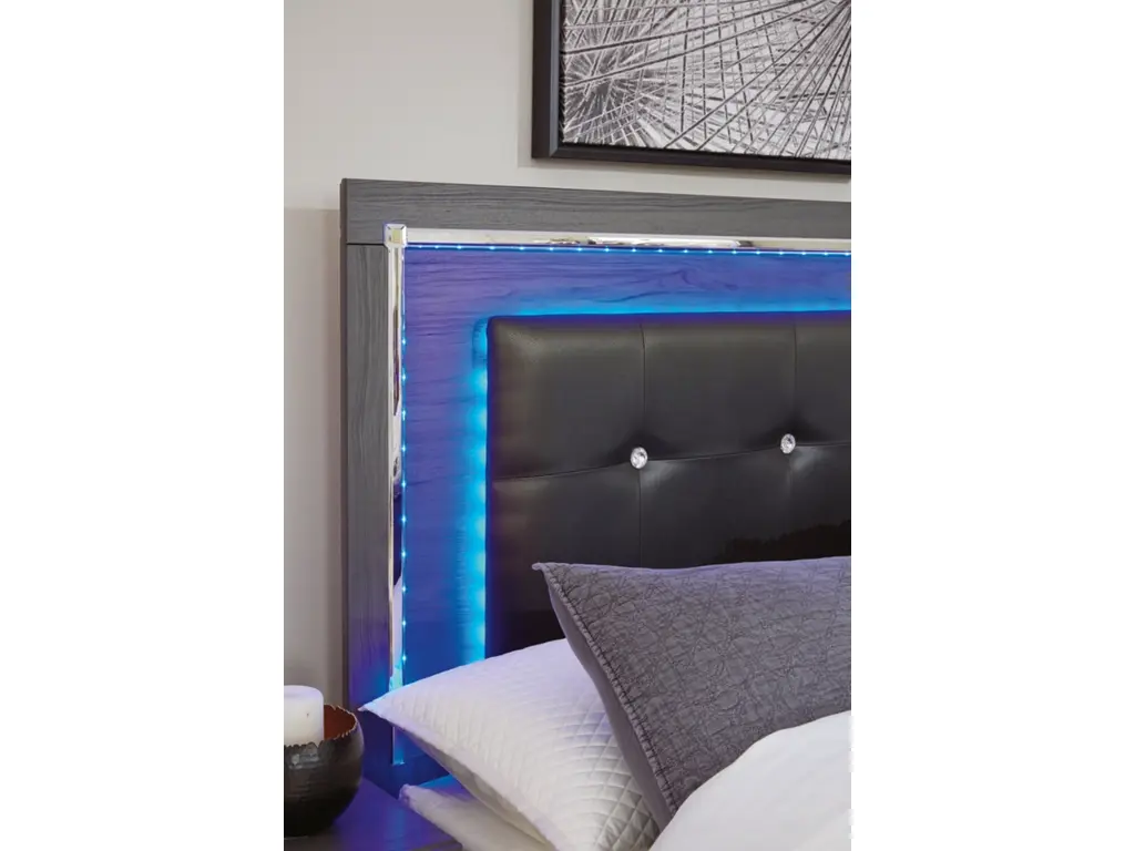 Reminiscent of Hollywood glamour of yesteryear, the Lodanna full panel bed interprets luxury in a decidedly modern way. Sumptuous details include button-tufted upholstery, faceted faux crystals and chrome-tone accents beautifully lit by LED lights enhanced with remote-controlled settings for color and brightness.