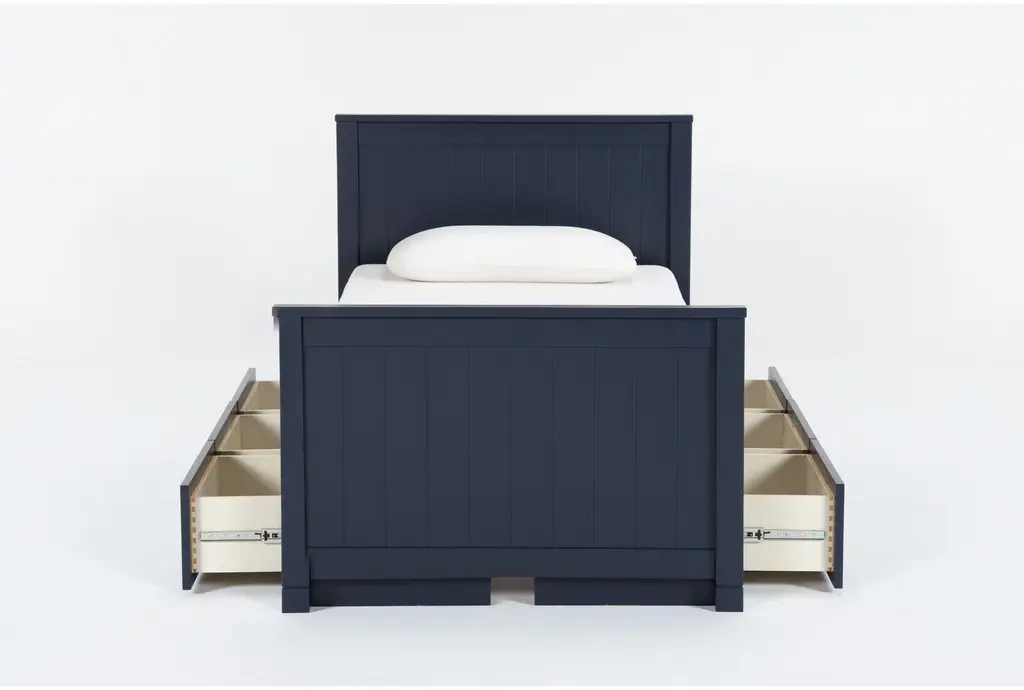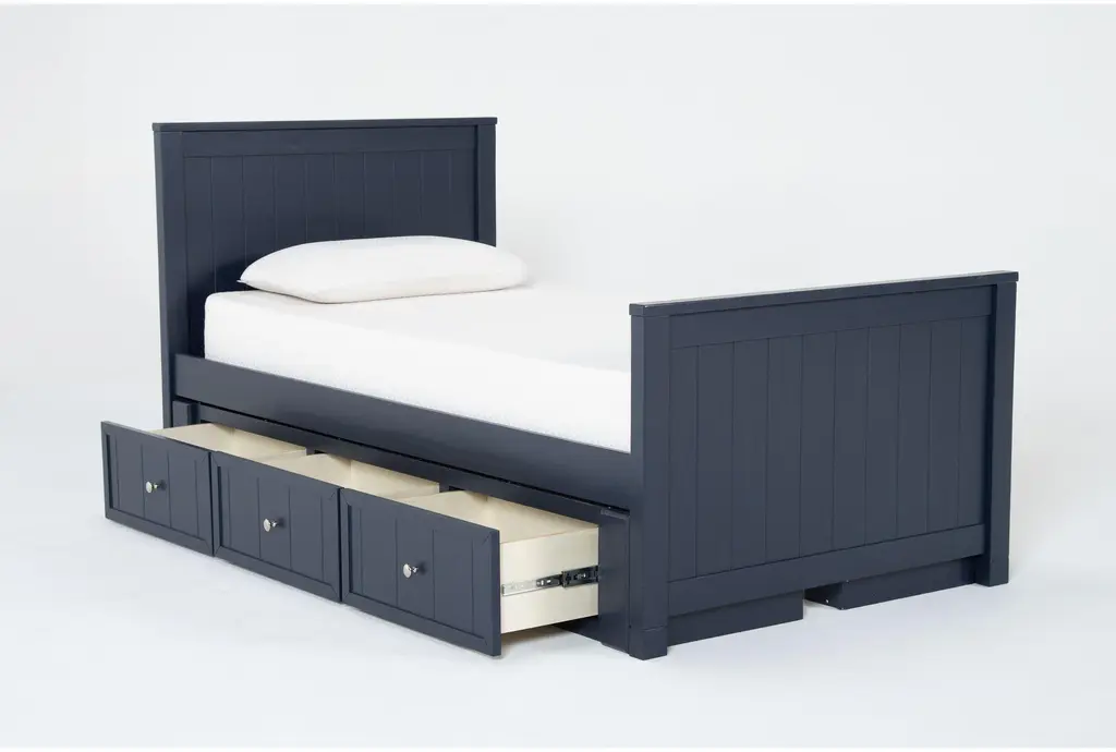 Luca Blue Twin Wood Panel Bed With Double 3-Drawer Storage Unit
