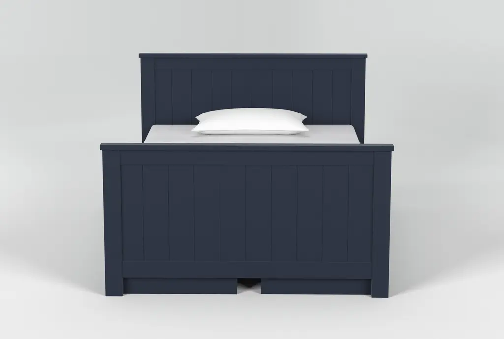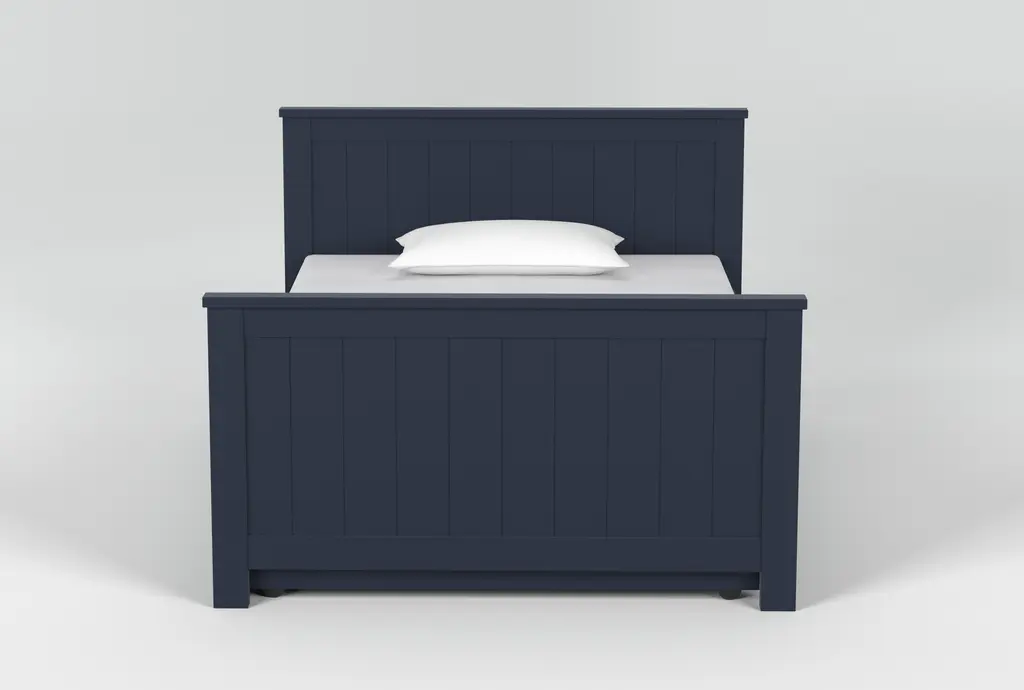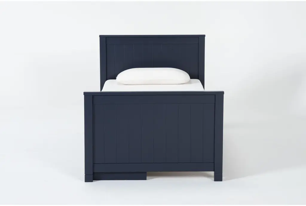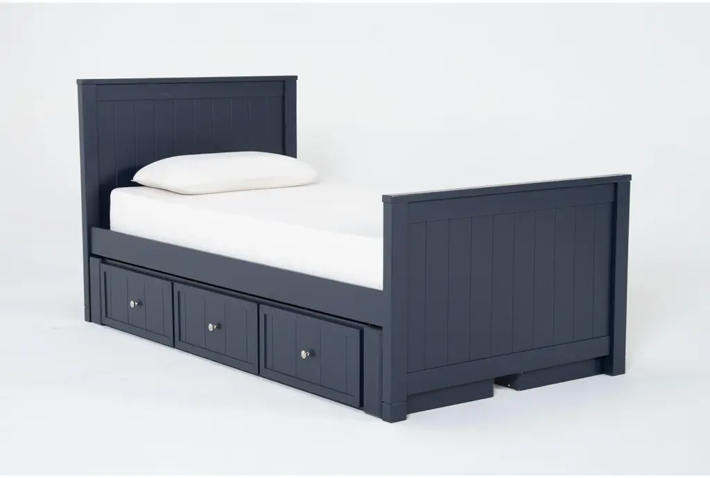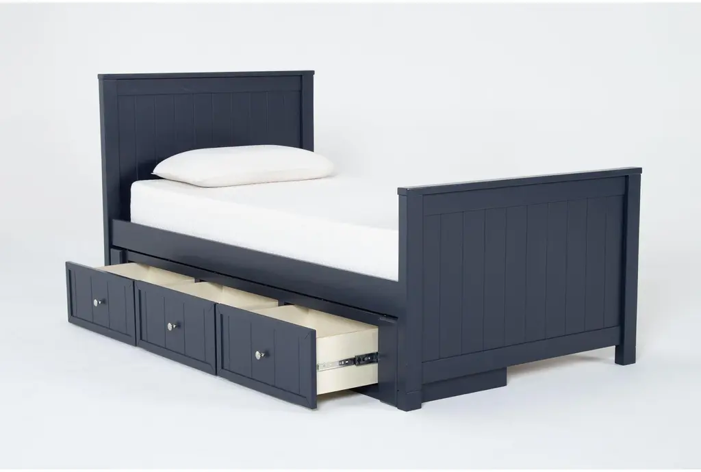 Luca Blue Twin Wood Panel Bed With Single 3-Drawer Storage Unit