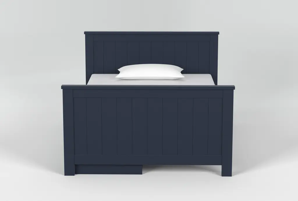 The Luca Navy Blue Full Wood Panel Bed with Single 3-Drawer Storage Unit is a perfect addition to any contemporary bedroom. This full-size bed features convenient side storage to help keep your space organized. Made from solid pine and MDF, it offers a sturdy and reliable sleeping solution with no foundation needed.