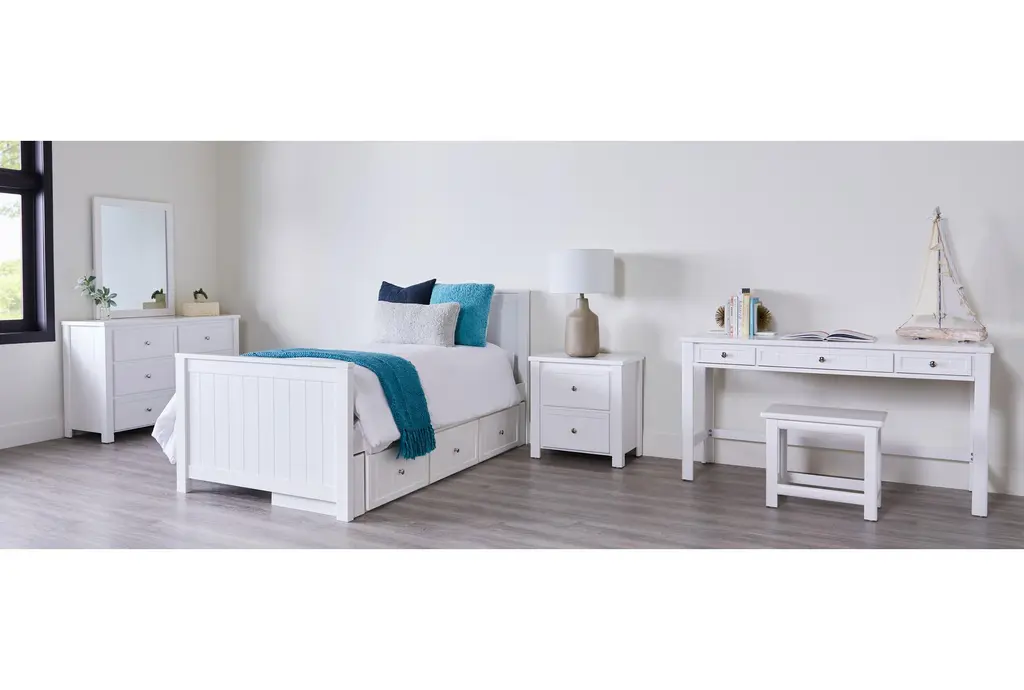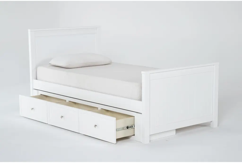 Luca White Twin Wood Panel Bed With Single 3-Drawer Storage Unit