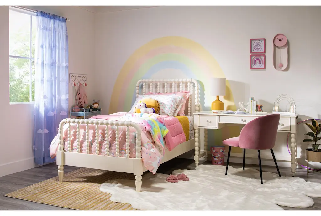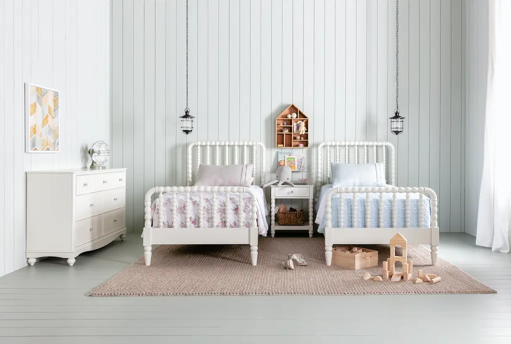 Kids, teens and parents will all discover something to adore about our Madison White twin spindle bed, from the graceful, classic style to the incredible value. Featuring traditional and whimsical wood turnings, this piece is designed to be the heart and soul of the bedroom. It boasts solid poplar wood construction and corner blocking to ensure long-lasting quality, safety and structural integrity.