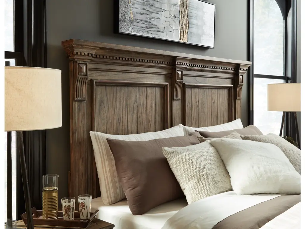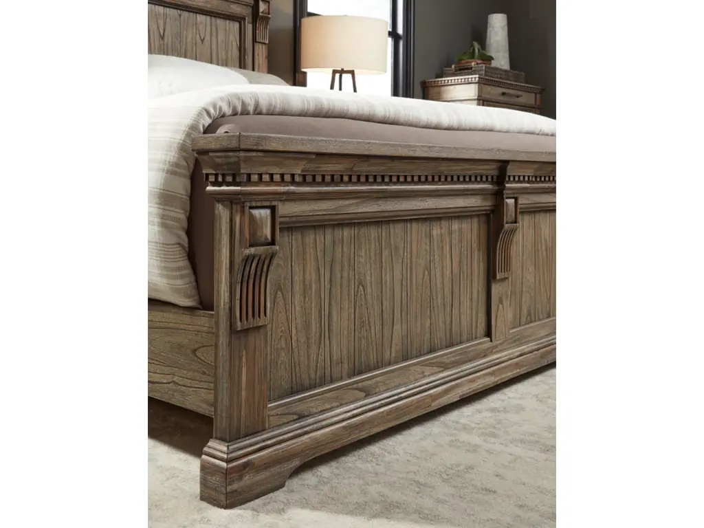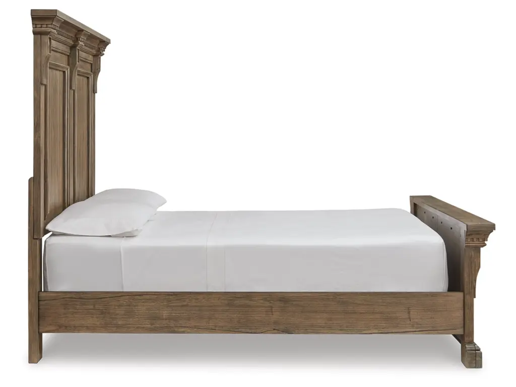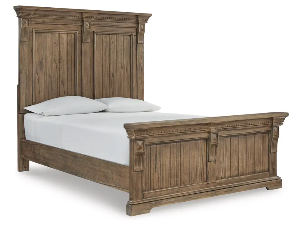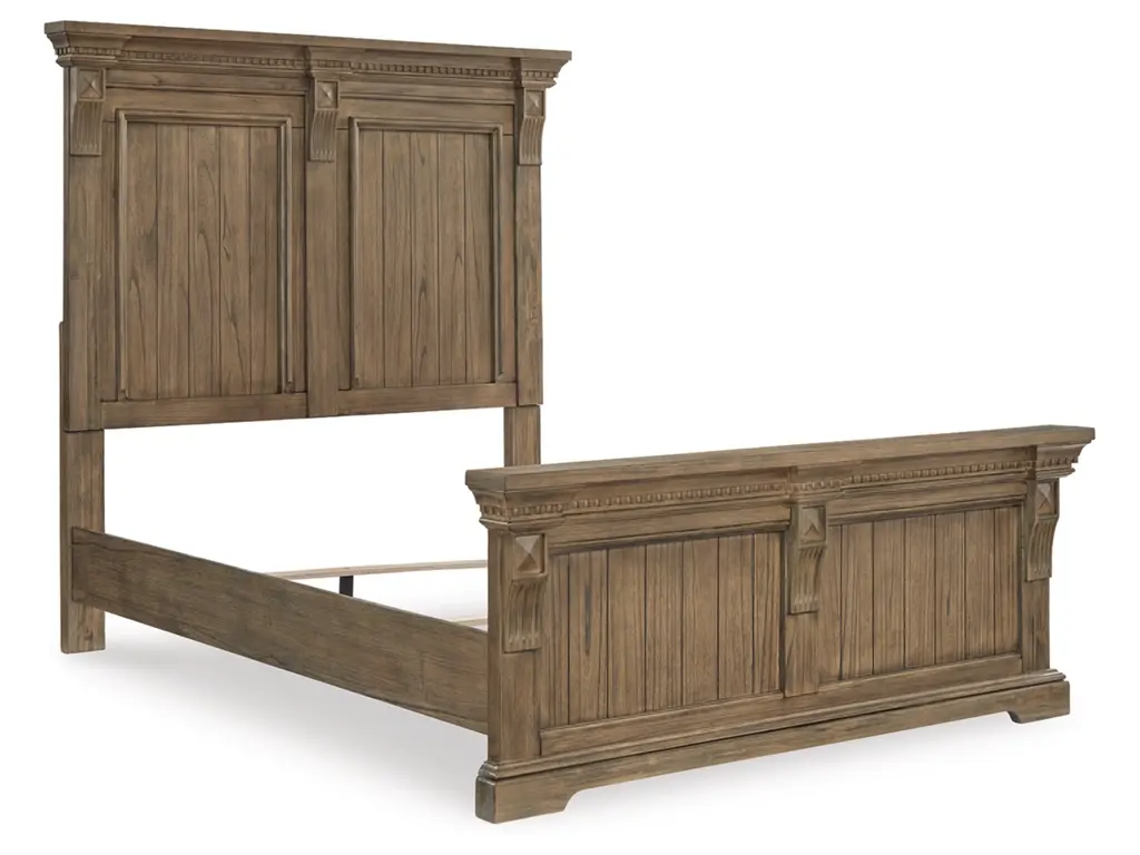 Curate a vintage-inspired retreat from the modern world without setting foot in a flea market. The Markenburg queen panel bed is draped in a dreamy finish that brings out the wood's natural beauty. Stylized corbels and a subtle trim provide picturesque finishing touches.