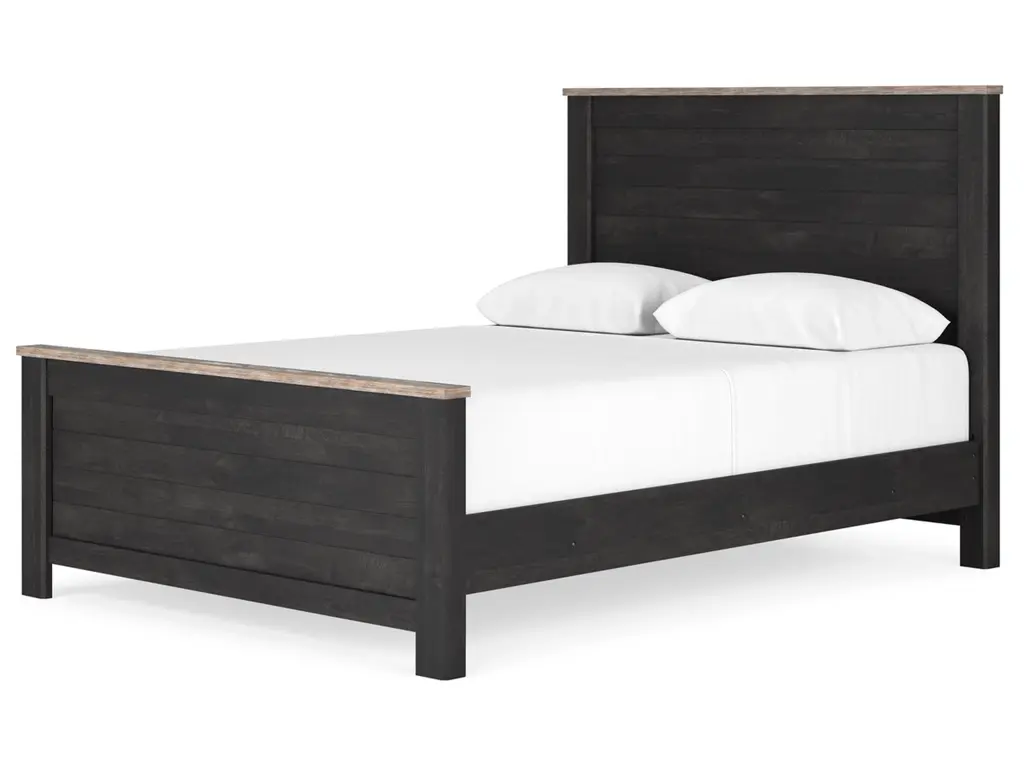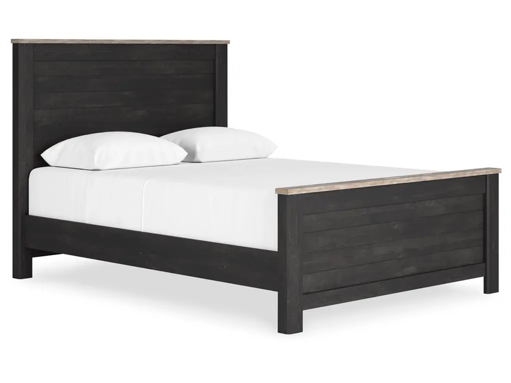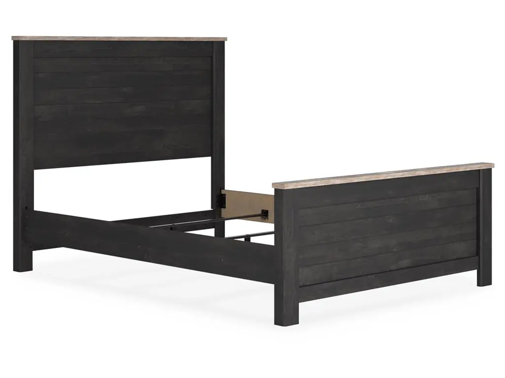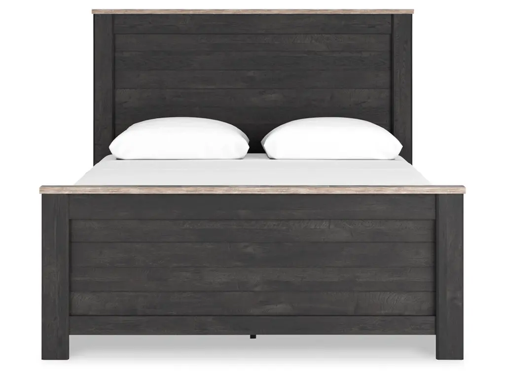 Charming French farmhouse aesthetics. Deep, industrial-inspired hues. The Nanforth queen panel bed balances beautiful simplicity with the luxurious details of yesteryear. The distinct two-tone finish is bold without sacrificing the piece's quaint character. And with its stunning large-scale silhouette, this bed is sure to appeal to your unique eye for vintage-inspired design.