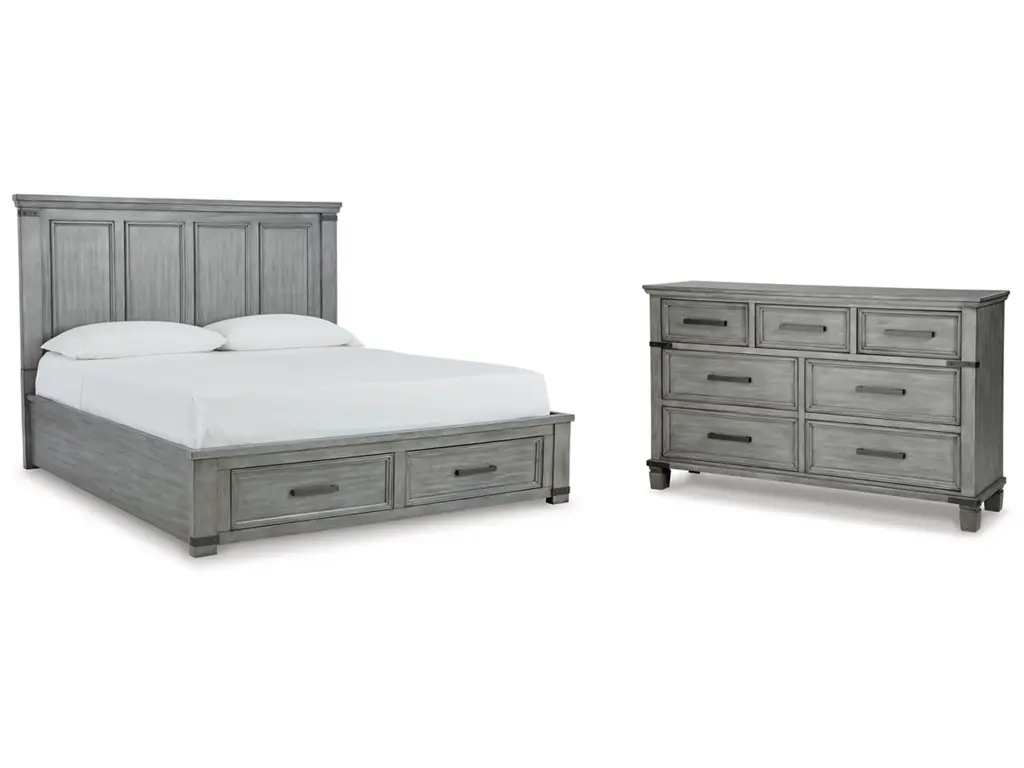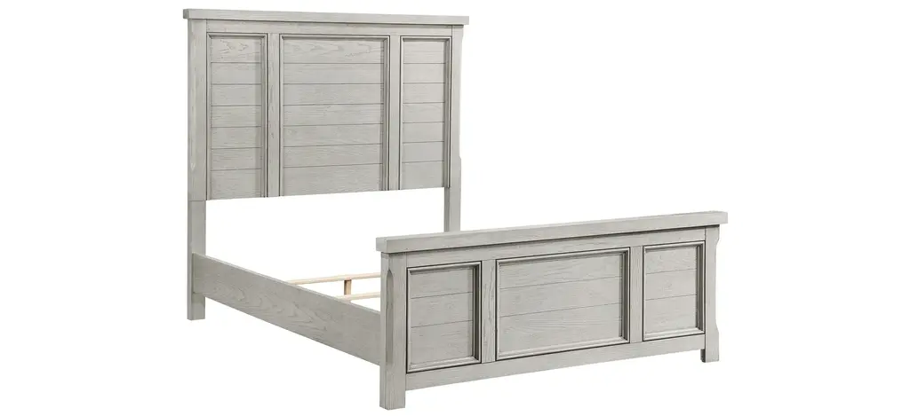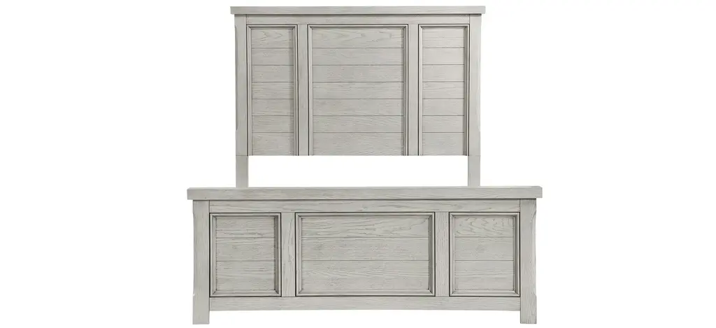 Oslo Bed is lines and versatile finish create a classic addition for your bedroom. Oak veneer is finished in antique light gray, serving as a neutral canvas for your personal decorative preferences. The Eastern King bed's unfettered framed panel headboard and low-profile footboard serve as your bedroom's stately focal point.