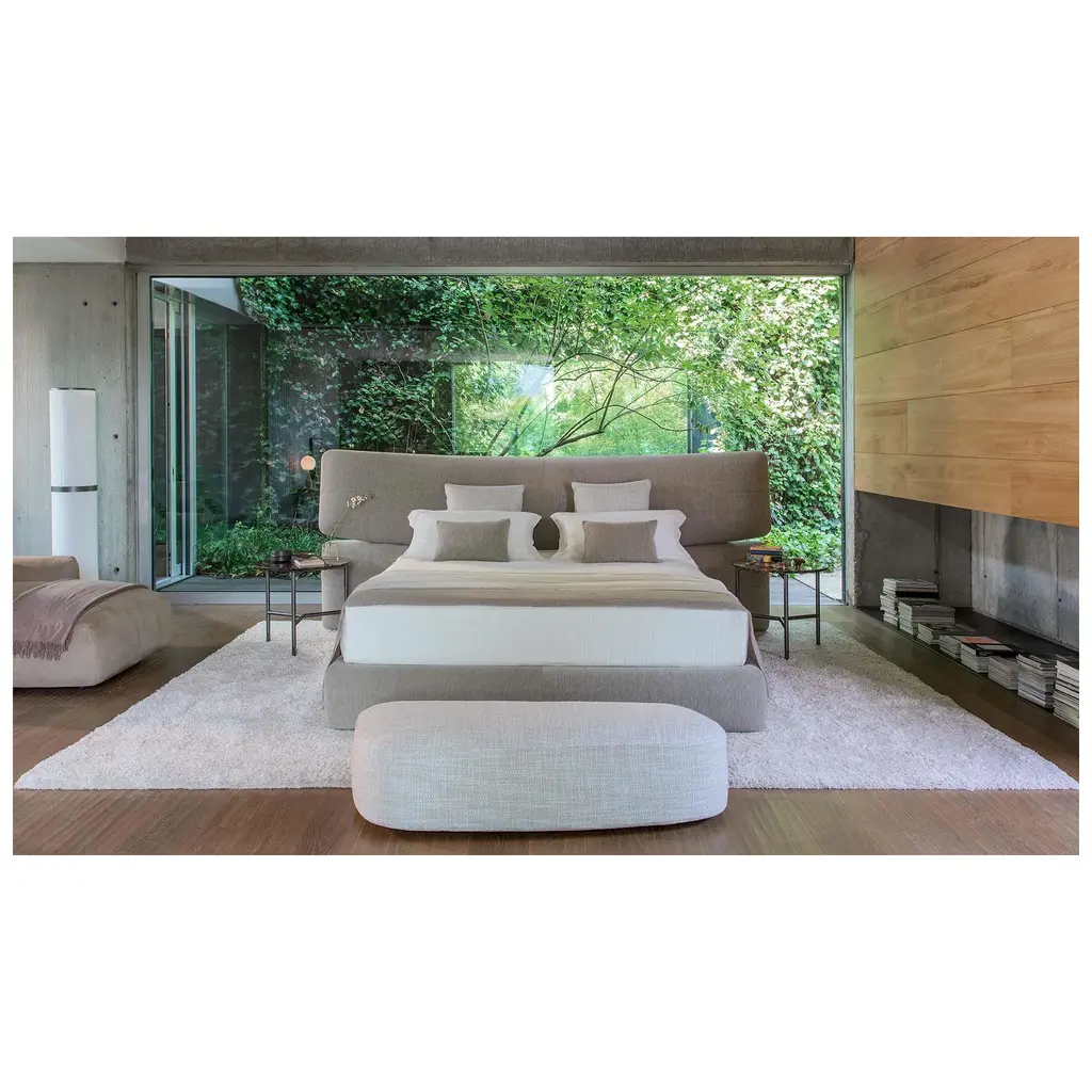 Transform your bedroom into a luxurious haven with the Flou Yuna Padded Panel Headboard Bed. Designed as an important and contemporary textile centerpiece, its generous upholstered headboard features two overlapping panels for added comfort and elegance. Choose from a variety of base options to complete the look.