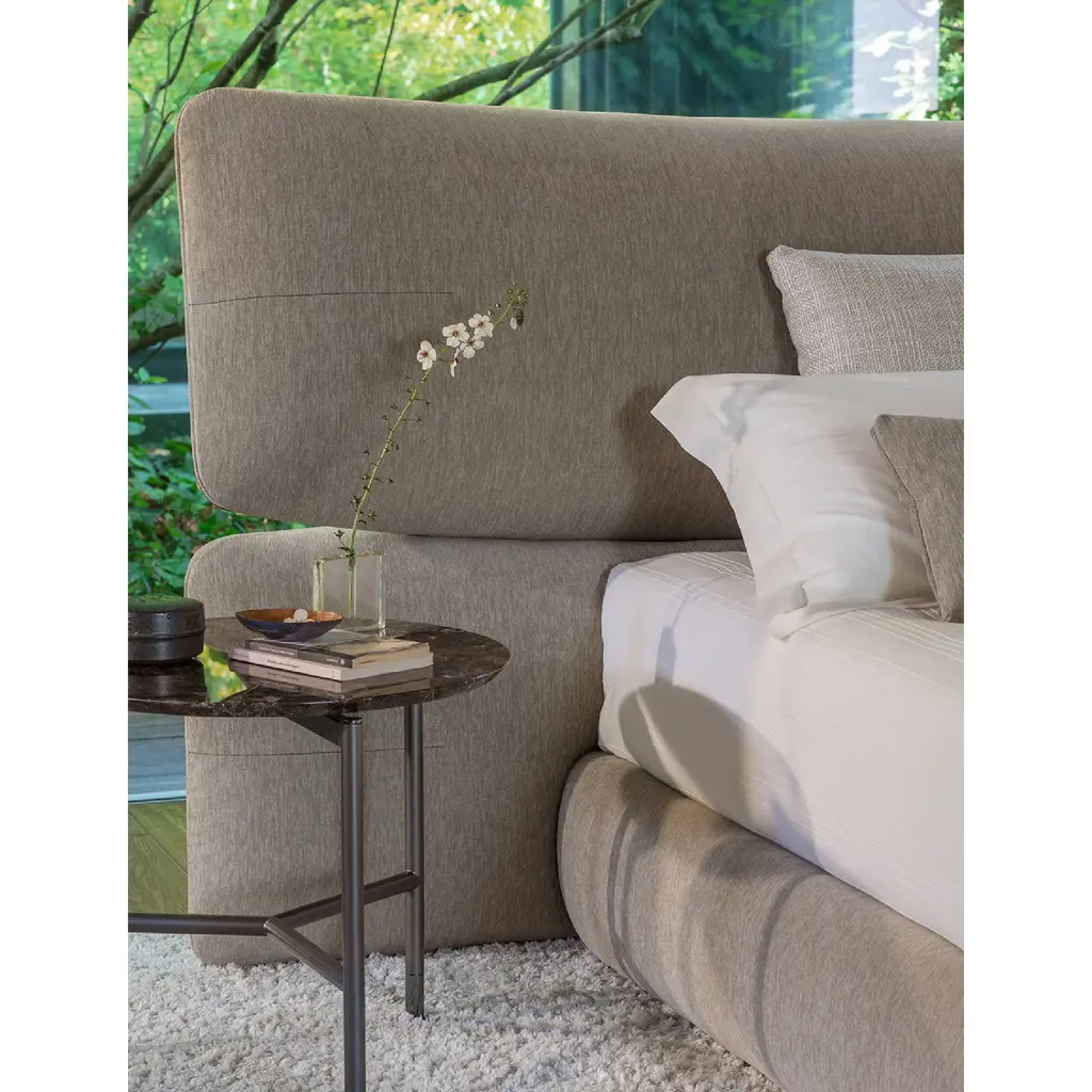 Transform your bedroom into a luxurious haven with the Flou Yuna Padded Panel Headboard Bed. Designed as an important and contemporary textile centerpiece, its generous upholstered headboard features two overlapping panels for added comfort and elegance. Choose from a variety of base options to complete the look.
