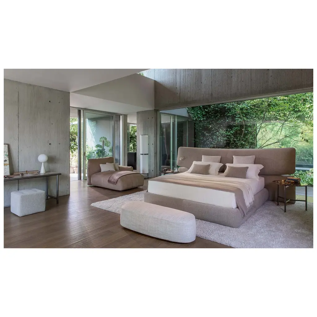 Transform your bedroom into a luxurious haven with the Flou Yuna Padded Panel Headboard Bed. Designed as an important and contemporary textile centerpiece, its generous upholstered headboard features two overlapping panels for added comfort and elegance. Choose from a variety of base options to complete the look.