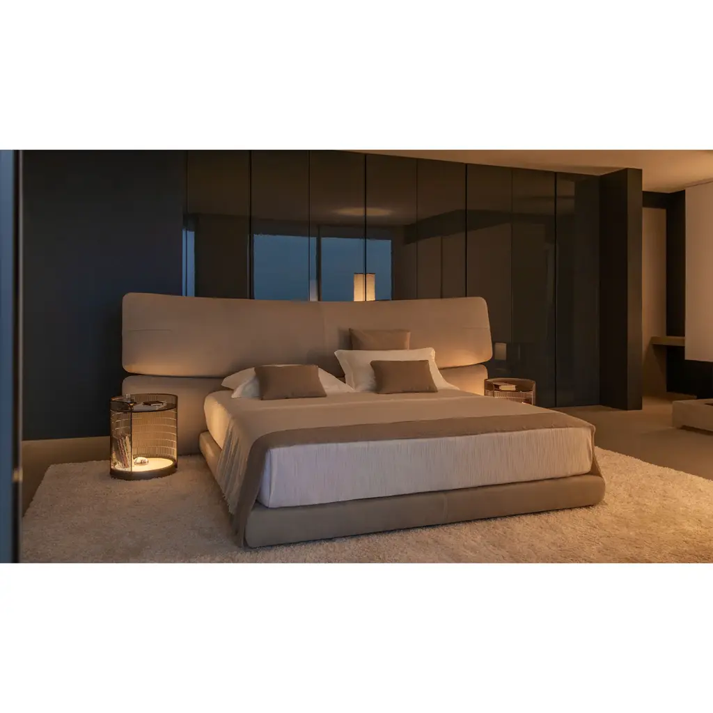 Transform your bedroom into a luxurious haven with the Flou Yuna Padded Panel Headboard Bed. Designed as an important and contemporary textile centerpiece, its generous upholstered headboard features two overlapping panels for added comfort and elegance. Choose from a variety of base options to complete the look.