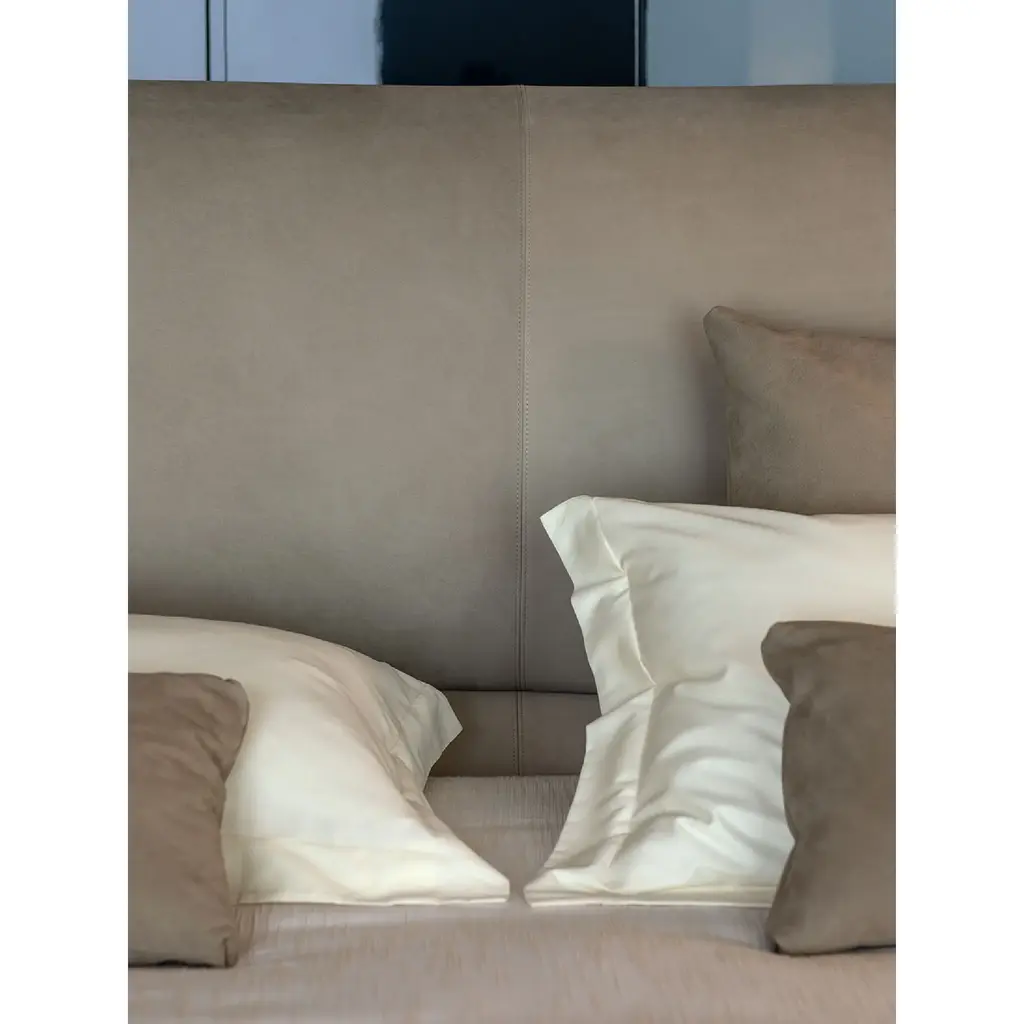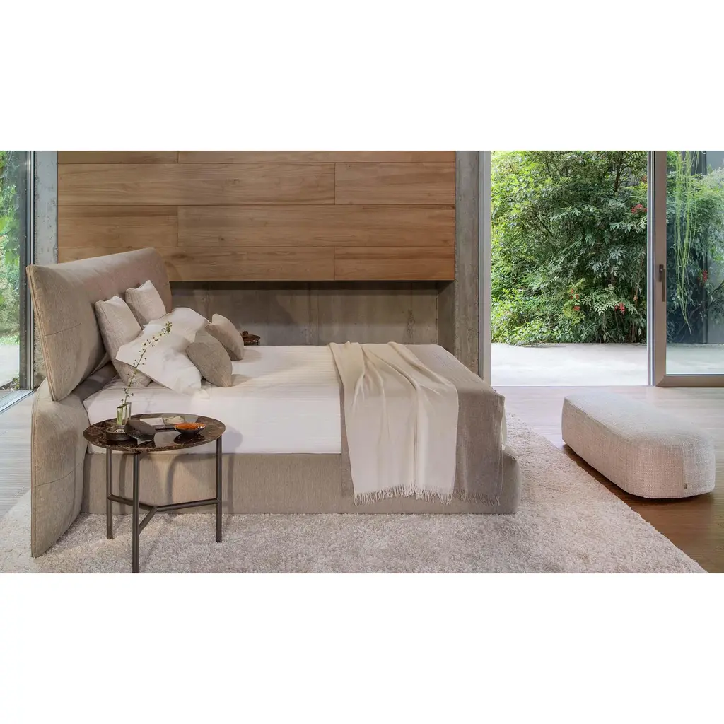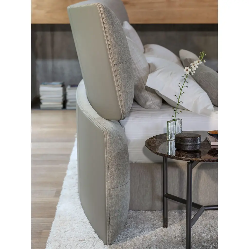Transform your bedroom into a luxurious haven with the Flou Yuna Padded Panel Headboard Bed. Designed as an important and contemporary textile centerpiece, its generous upholstered headboard features two overlapping panels for added comfort and elegance. Choose from a variety of base options to complete the look.