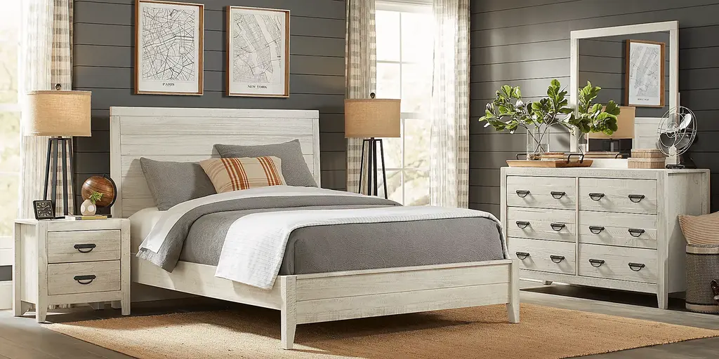 Palm Grove White 7 Pc Queen Panel Bedroom