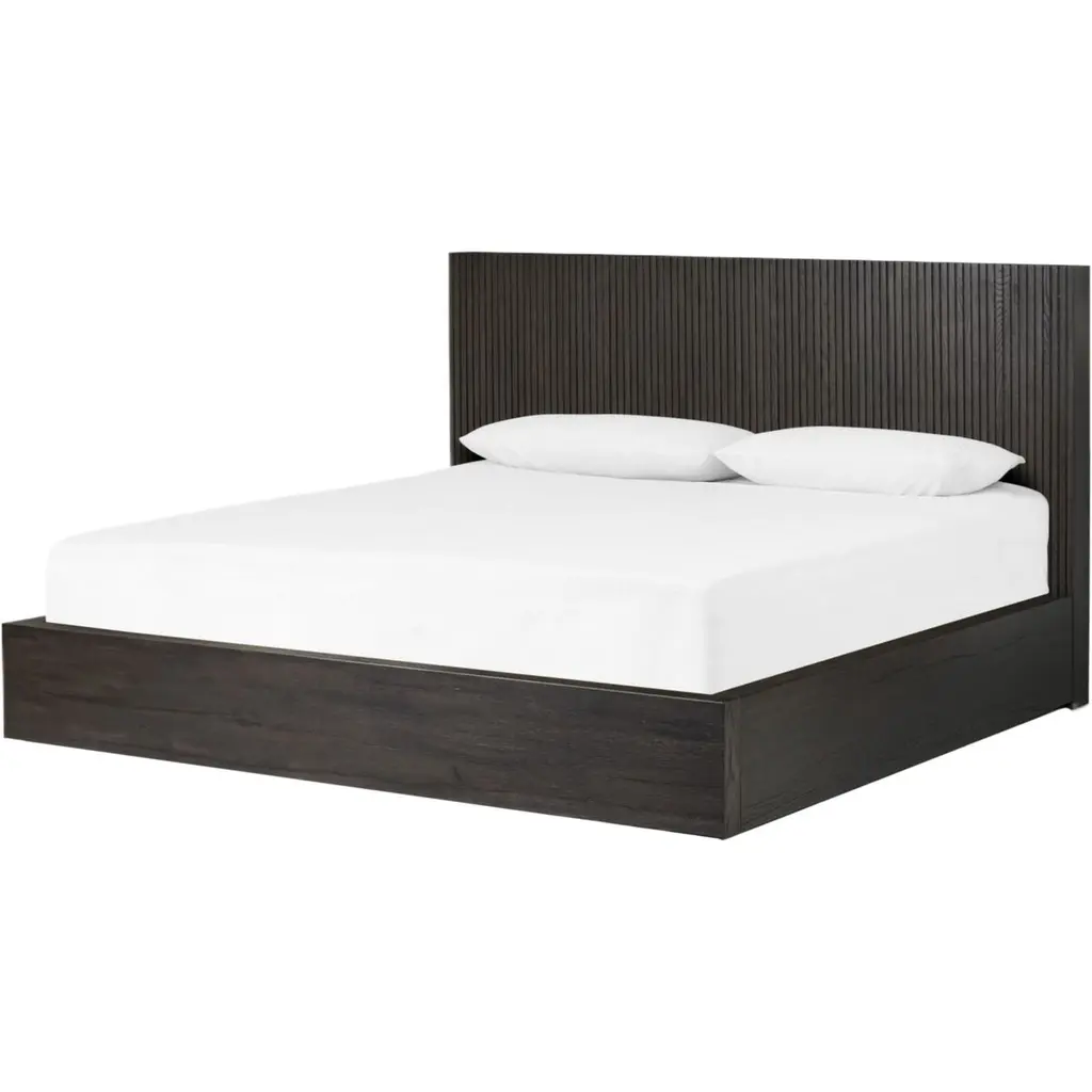 Transform your bedroom into a modern retreat with the Pierce Espresso Black California King Wood Platform Bed. This striking bed offers the perfect combination of style and functionality with its sleek design and ample storage options. Constructed from oak veneer and solid rubberwood, this bed is built to last and provide you with a comfortable night's sleep.