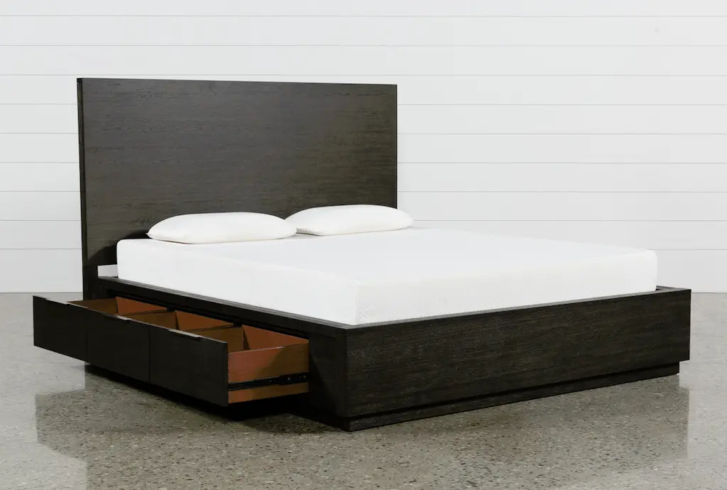Pierce Espresso Black California King Wood Platform Bed | Side Storage | Drawers