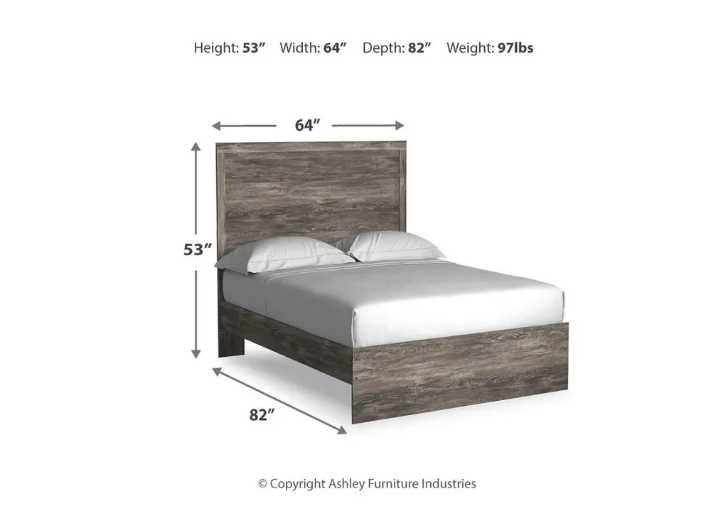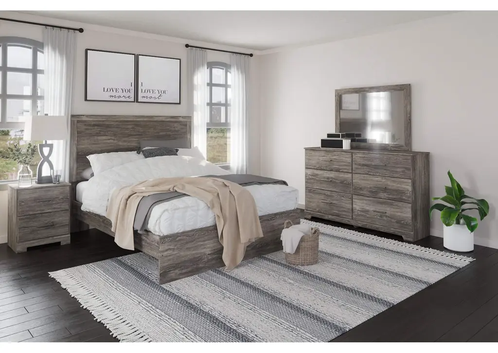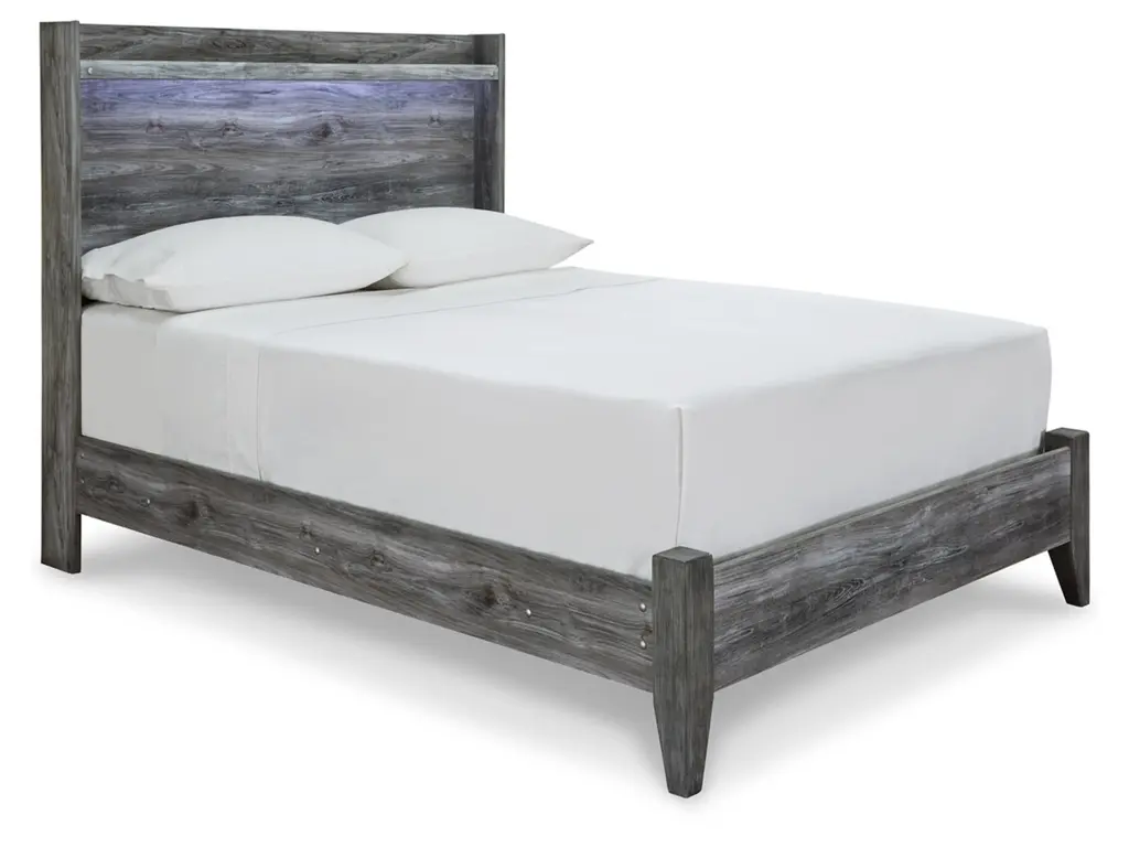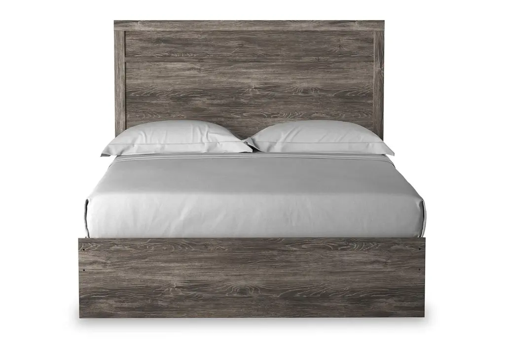With its clean-lined look and modern attitude, the Ralinksi queen panel bed is a fresh style awakening. A warm gray hue over replicated oak grain easily complements other furniture finishes. The simple, unadorned profile is given depth and dimension with the addition of plank-style moulding on the headboard—proof that beauty lies in the details. Weight 109.000 lbs. (49.05kgs.)