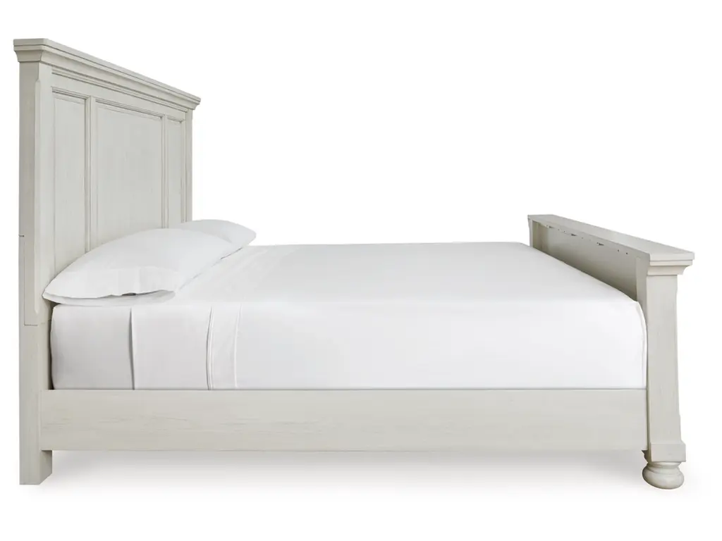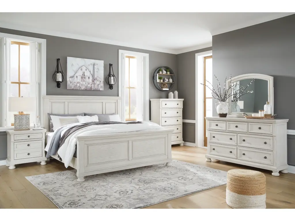 Elegant, timeless furnishings take your bedroom to the next level. Nothing does that better than the Robbinsdale king panel bed. The antiqued white finish with a wonderful grain texture radiates sophistication, making this the perfect piece to round out the ultimate tasteful bedroom.