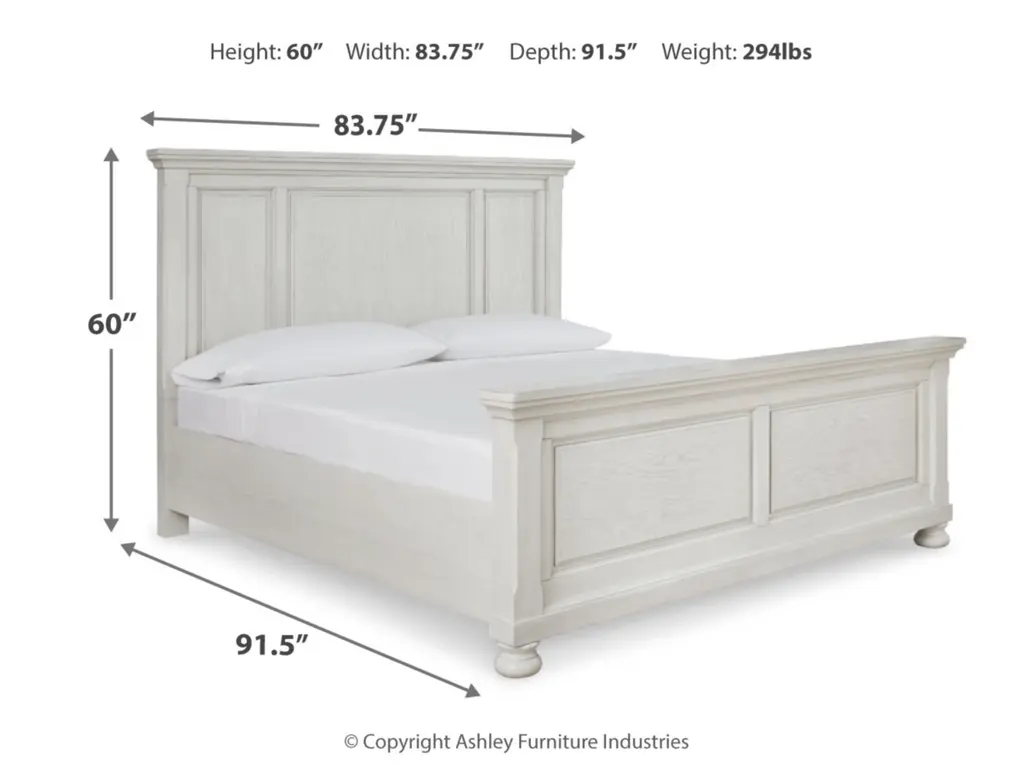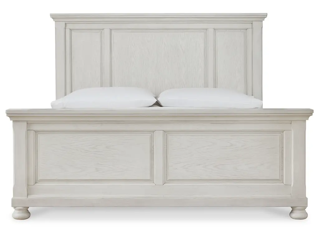 Elegant, timeless furnishings take your bedroom to the next level. Nothing does that better than the Robbinsdale king panel bed. The antiqued white finish with a wonderful grain texture radiates sophistication, making this the perfect piece to round out the ultimate tasteful bedroom.