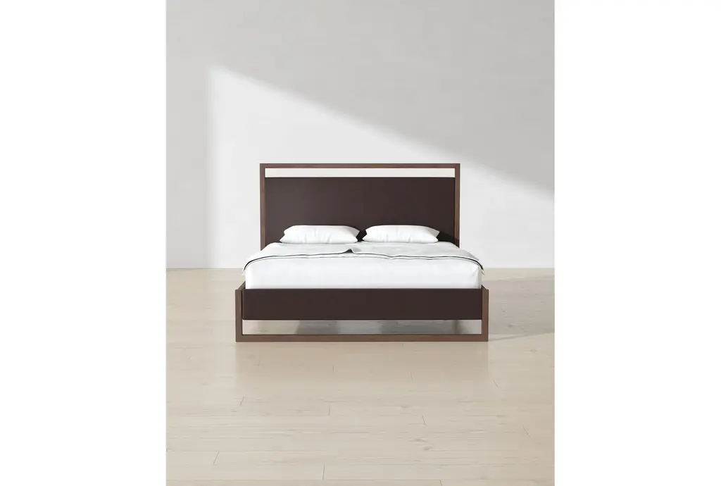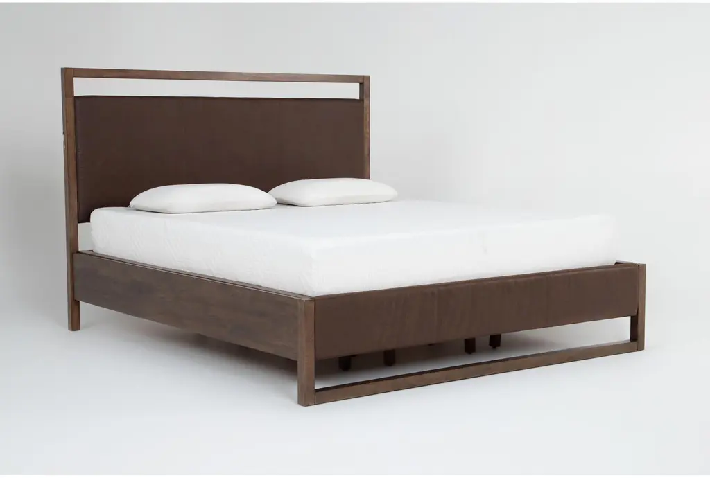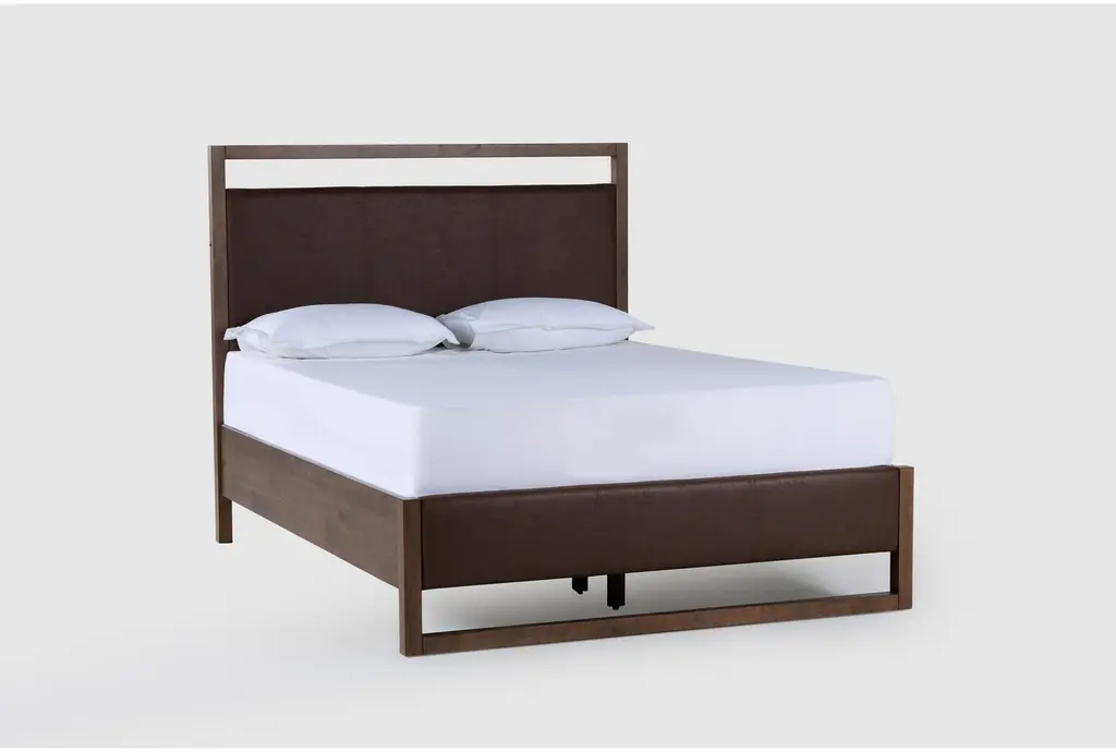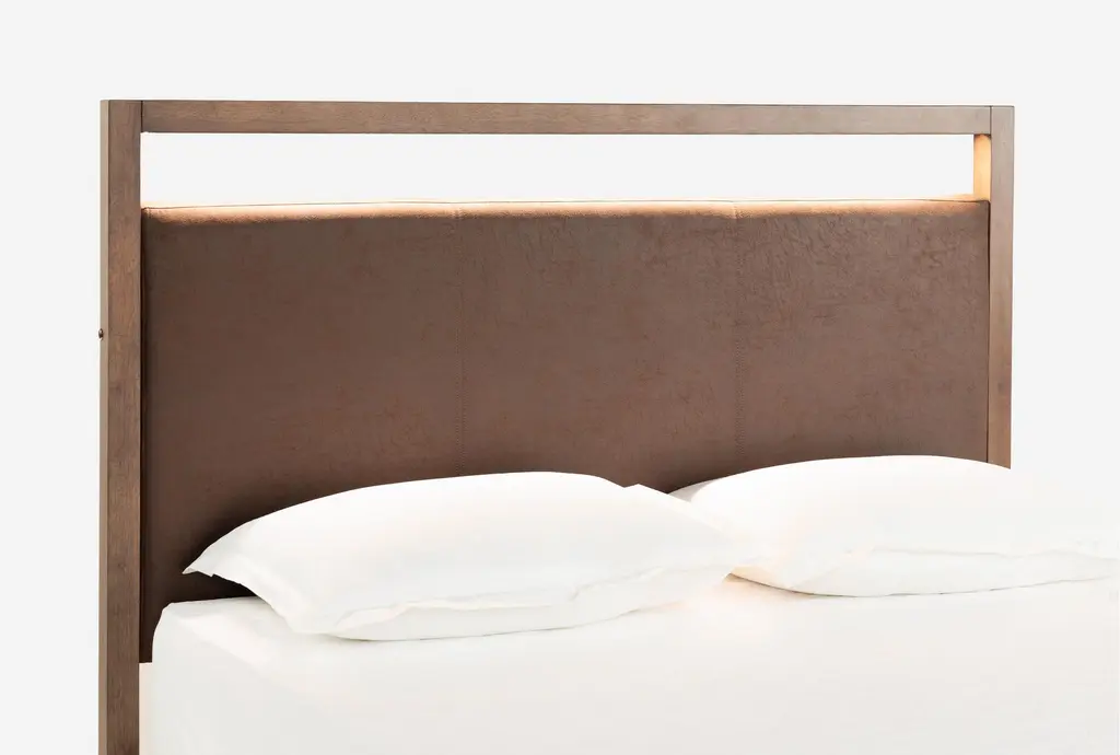 Sawyer Brown Walnut Queen Upholstered & Wood Platform Bed | Led Lights